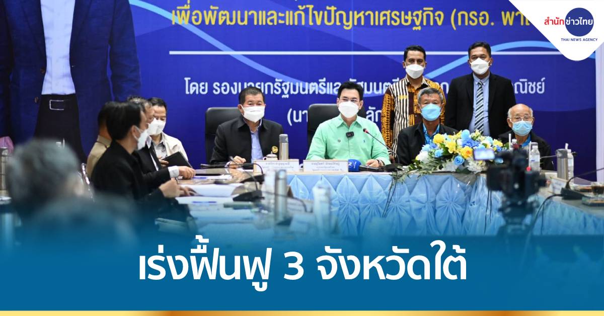 นราธิวาส 15 ต.ค.-รัฐมนตรีพาณิชย์ประชุมร่วมภาครัฐและเอกชนหวังเดินหน้าเร่งฟื้นฟู 3 จังหวัดชายแดนใต้ เน้นสนับสนุนส่งออกคู่กับท่องเที่ยว เตรียมพร้อมรับเปิดประเทศ 1 พ.ย.นี้ เชื่อโอกาสการค้าชายแดนไทย-มาเลเซียเติบโตได้ เร่งให้ทุกฝ่ายประสานกับมาเลเซียเตรียมพร้อมเปิดด่านการค้าด้วย