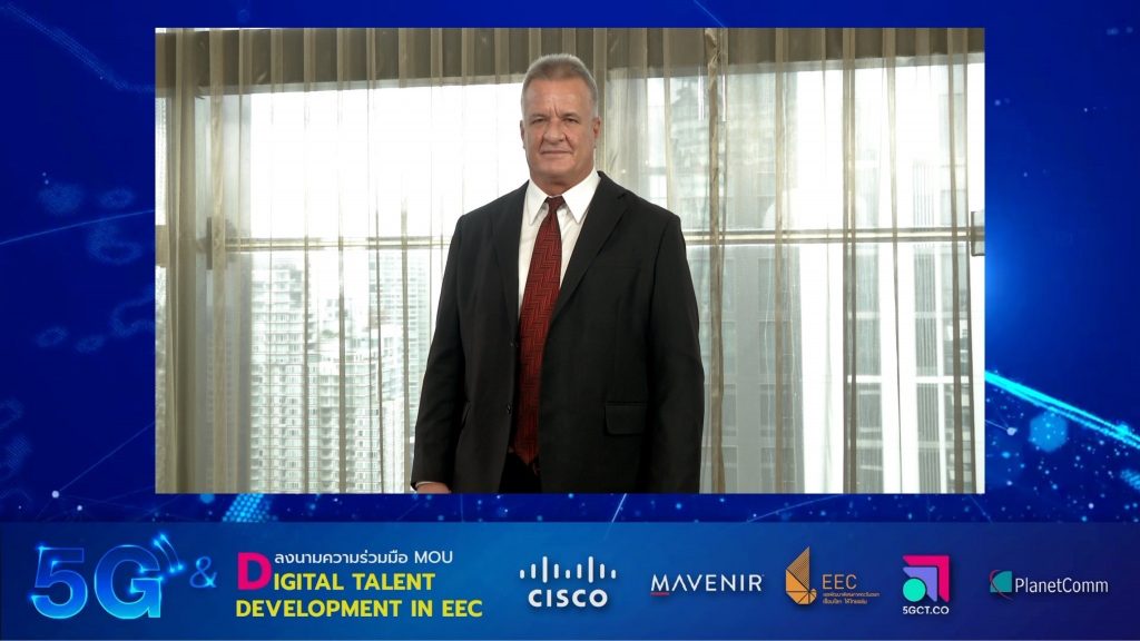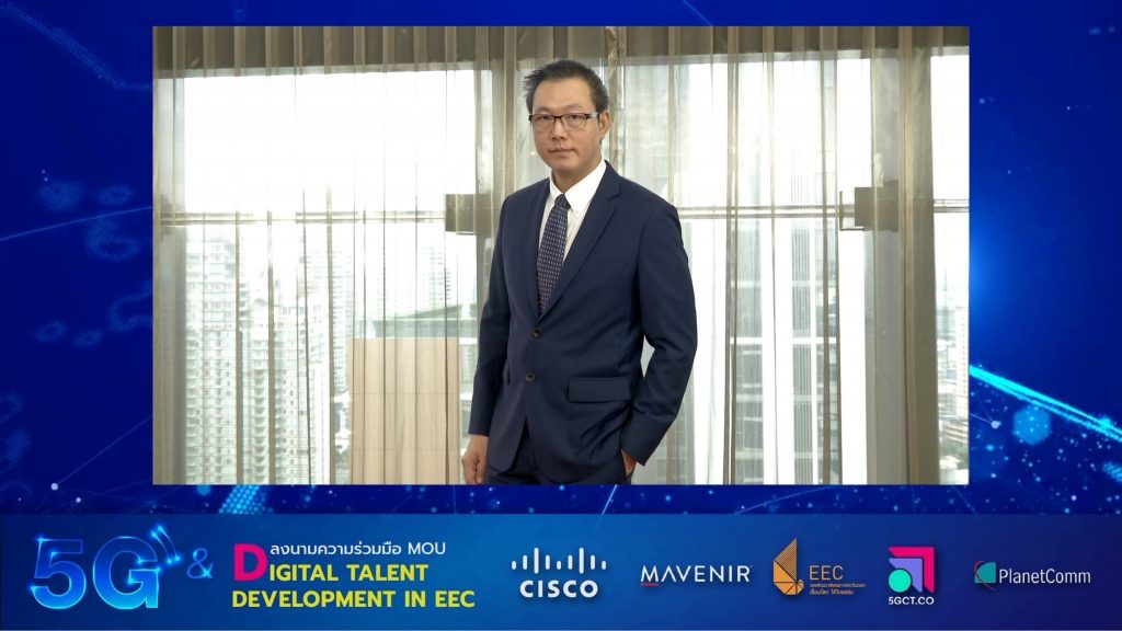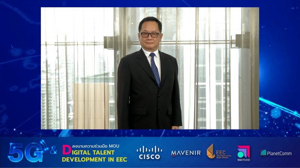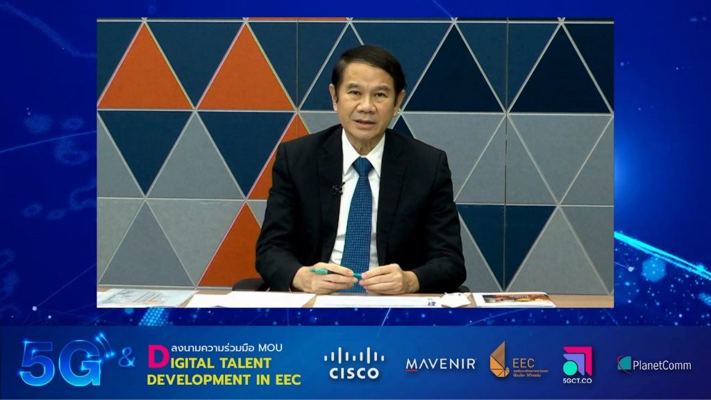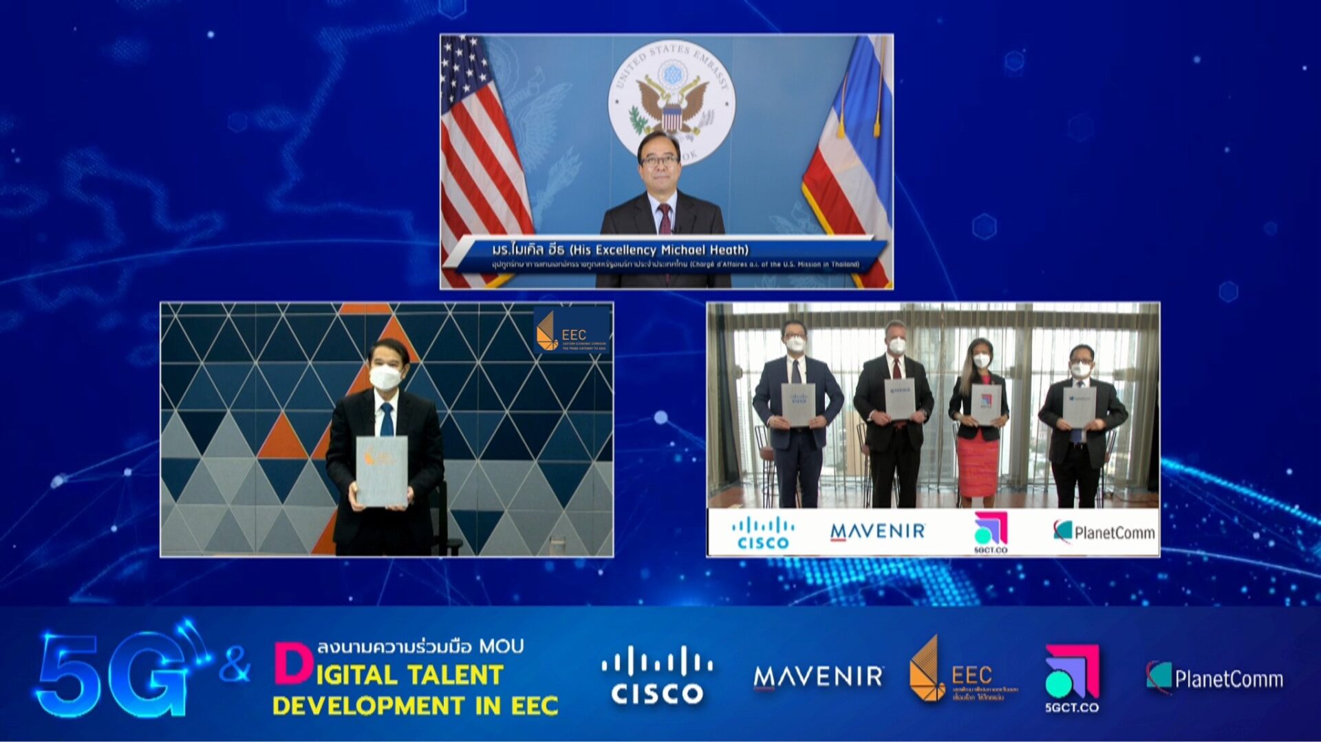 สำนักงานคณะกรรมการนโยบายเขตพัฒนาพิเศษภาคตะวันออก (สกพอ.) หรืออีอีซี ร่วมกับ บริษัท ซิสโก้ ซีสเต็มส์ (ประเทศไทย) จำกัด บริษัท มาเวนเนีย ซิสเท็มส์ (ประเทศไทย) จำกัด บริษัท 5จี แคททะลิซท์ เทคโนโลยีส์ จำกัด และบริษัท แพลนเน็ต คอมมิวนิเคชั่น เอเชีย จำกัด (มหาชน) ลงนามความร่วมมือ (MOU) “การพัฒนาทักษะบุคลากร เพื่อส่งเสริมการประยุกต์ใช้เทคโนโลยีดิจิทัล และ 5G แก่ภาคอุตสาหกรรมในพื้นที่อีอีซี (5G & Digital Talent Development in EEC)” ผ่านระบบออนไลน์ โดยมี นายไมเคิล ฮีธ อุปทูต รักษาการแทน เอกอัครราชทูตสหรัฐอเมริกา ประจำประเทศไทย เป็นประธานและสักขีพยาน โดย ดร.คณิศ แสงสุพรรณ เลขาธิการ อีอีซี และ ผู้บริหารระดับสูงจากหน่วยงานทั้ง 4 แห่งร่วมกันลงนาม ฯ