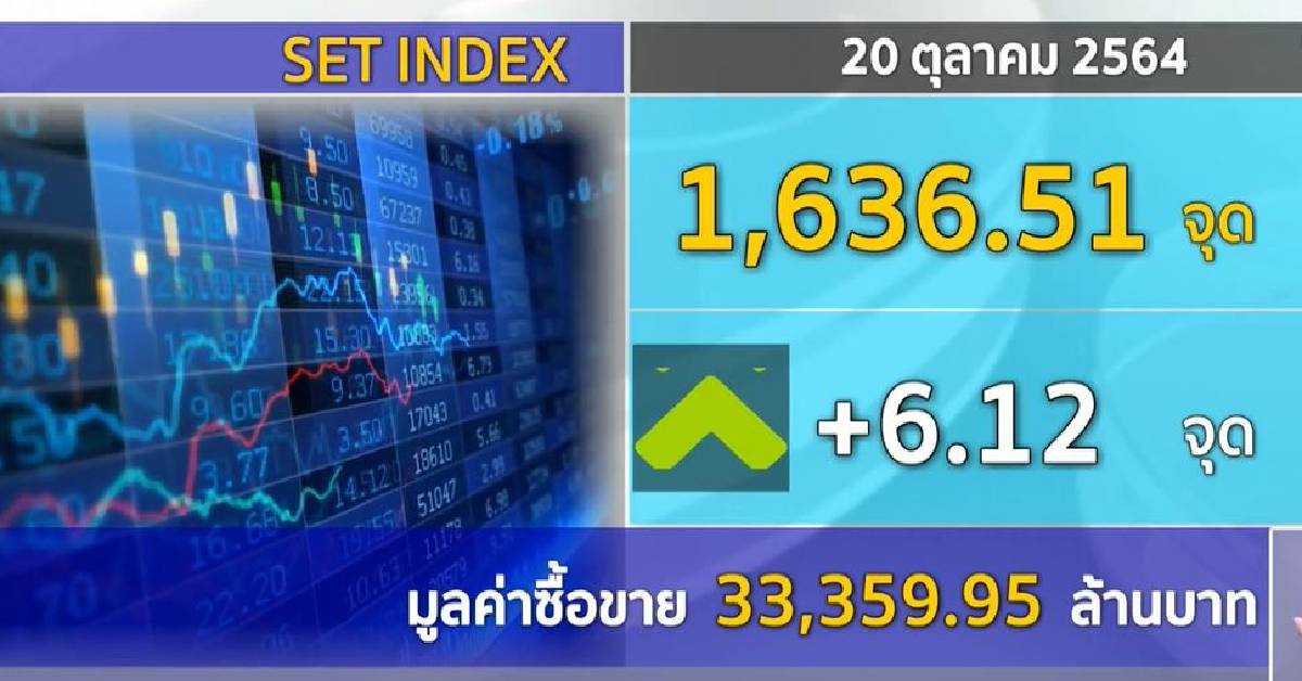 กทม. 20 ต.ค.-ตลาดหุ้นไทยช่วงเช้าเคลื่อนไหวในแดนบวก เนื่องจากราคาน้ำมันยังสูง และควาดหวังเศรษฐกิจไทยจะฟื้นตัวจากการเปิดประเทศ แต่ยังขาดปัจจัยใหม่ นอกจากนี้ไอเอ็มเอฟยังลดคาดการณ์เศรษฐกิจไทยปีนี้และปีหน้าลง ดัชนีช่วงเที่ยงอยู่ที่ 1,636.51 จุด เพิ่มขึ้น 6.12 จุด มูลค่าซื้อขาย 33,359.95 ล้านบาท