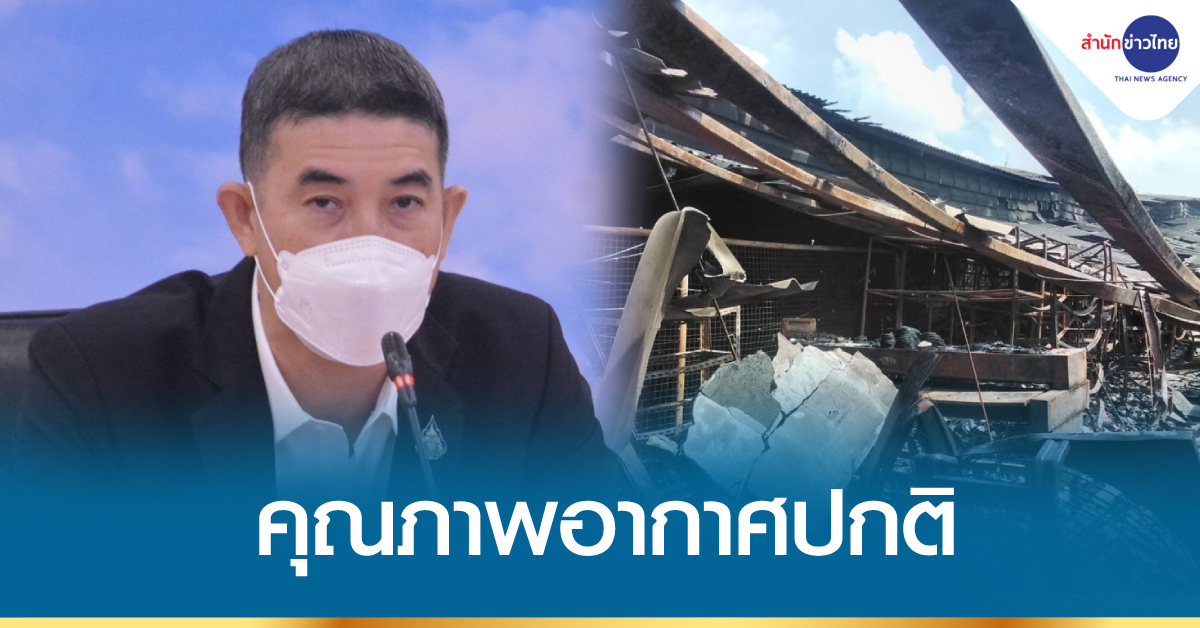 กรุงเทพฯ 20 ต.ค.- อธิบดีกรมควบคุมมลพิษ เผยผลตรวจสอบบริเวณที่เกิดเหตุเพลิงไหม้โรงงานผลิตรองเท้า ถ.กิ่งแก้ว พบว่า คุณภาพอากาศอยู่ในระดับปกติ