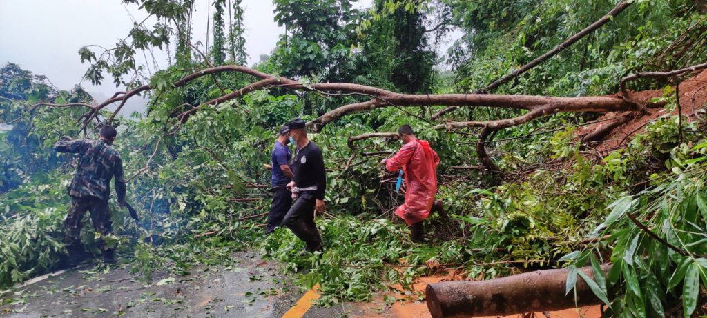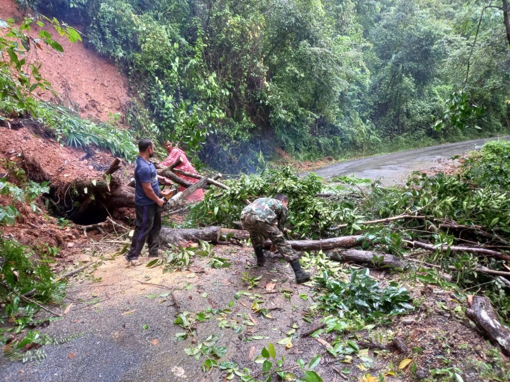 นายนิพนธ์ จำนงสิริศักดิ์ ผู้อำนวยการสำนักบริหารพื้นที่อนุรักษ์ที่ 3 (บ้านโป่ง) กล่าวว่า นายเจริญ ใจชน หัวหน้าอุทยานแห่งชาติทองผาภูมินำกำลังเจ้าหน้าที่เปิดเส้นทางที่ถูกกัดเซาะเนื่องจากน้ำป่าไหลหลากแล้วกัดเซาะเส้นทางหลวง หมายเลข 3272 บริเวณช่วง กม.ที่ 40+800 รวมทั้งเกิดดินสไลด์และต้นไม้ใหญ่ล้มพาดขวางปิดเส้นทางหลวงชนบทที่ กจ.4088 (บ้านไร่-อีต่อง) ต.ปิล๊อก อ.ทองผาภูมิ จ.กาญจนบุรีมากกว่า 30 จุด