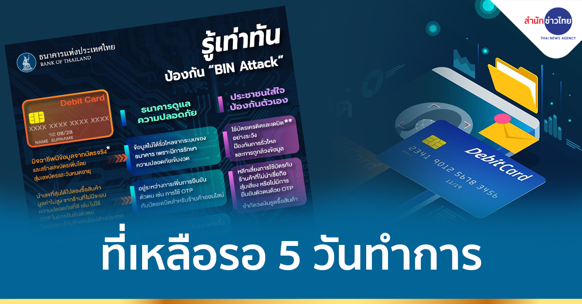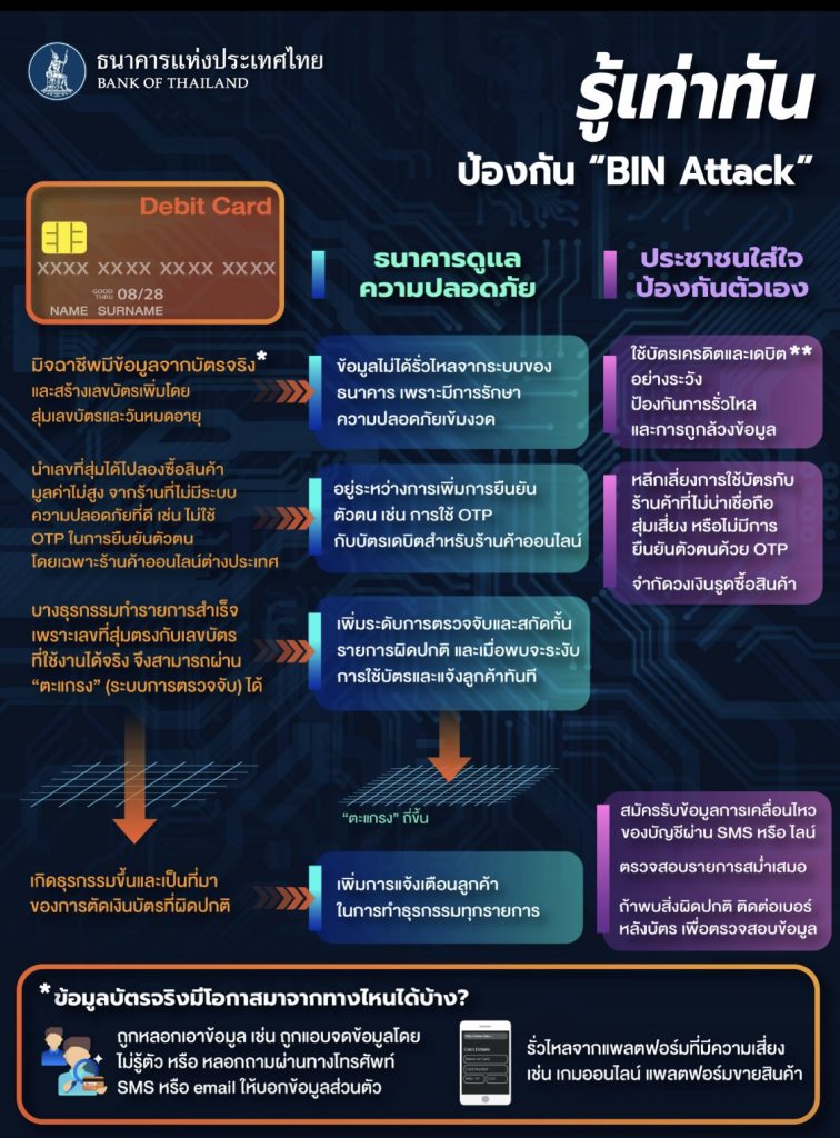 ยืนยันการทำธุรกรรมออนไลน์ของธนาคารมีความปลอดภัยเป็นไปตามมาตรฐานสากล โดยจากข้อมูลล่าสุด อัตราการทำธุรกรรมทุจริตผ่านบัตรชำระเงิน (เดบิต/เครดิต) ของไทยอยู่ในเกณฑ์ต่ำกว่าค่าเฉลี่ยของภูมิภาค และหากมีการทุจริตที่ลูกค้าไม่เกี่ยวข้อง ธนาคารจะเป็นผู้รับผิดชอบ ทั้งนี้ ธนาคารจะร่วมมือกับ ธปท. และผู้ให้บริการเครือข่ายบัตรในการยกระดับการป้องกัน ในเรื่องการเฝ้าระวัง ตรวจสอบ ป้องกัน และดูแลรับผิดชอบความเสียหายอย่างต่อเนื่อง และ ประชาชนผู้ใช้บริการควรเฝ้าระวังและหมั่นตรวจสอบธุรกรรมของตนเองหรือทำการปรับวงเงินที่ผ่านช่องทางต่าง ๆ ของธนาคารด้วย หากมีข้อสงสัยขอให้ลูกค้าติดต่อผ่านช่องทางบริการต่าง ๆ ของธนาคารผู้ออกบัตรเพื่อความรวดเร็ว กรณีไม่ได้รับความสะดวกสามารถติดต่อศูนย์คุ้มครองผู้ใช้บริการทางการเงิน ธปท. (โทร. 1213) เพื่อประสานส่งข้อมูลและหลักฐานให้กับธนาคารต่อไป.- สำนักข่าวไทย