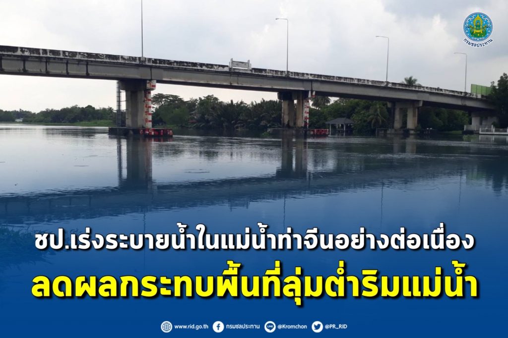 นายประพิศ จันทร์มา อธิบดีกรมชลประทานลงพื้นที่เพื่อตรวจติดตามการระบายน้ำในลุ่มน้ำท่าจีนเพื่อบรรเทาผลกระทบต่อประชาชนและเกษตรกร โดยเน้นย้ำให้ศูนย์บริหารจัดการอุทกภัยลุ่มน้ำท่าจีน (ส่วนหน้า) ใช้ระบบชลประทานทั้ง 2 ฝั่งของแม่น้ำเจ้าพระยาช่วยลดปริมาณน้ำที่จะไหลลงสู่แม่น้ำท่าจีนได้แก่ ลดการรับน้ำผ่านประตูระบายน้ำ (ปตร.) พลเทพซึ่งอยู่ที่ปากแม่น้ำท่าจีน โดยทยอยปรับตามปริมาณน้ำเหนือจากจังหวัดนครสวรรค์ที่ลดลงตามลำดับ พร้อมกันนี้ใช้คลองชลประทานฝั่งตะวันตกรับน้ำเพิ่มมากขึ้นได้แก่ คลองมะขามเฒ่า-อู่ทอง (คลอง มอ.) คลองมะขามเฒ่า-กระเสียว (คลอง มก.) ส่วนฝั่งตะวันออกให้เพิ่มการรับน้ำเข้าคลองชัยนาท-ป่าสัก ผ่านปตร.มโนรมย์ และคลองชัยนาท-อยุธยา รับน้ำผ่าน ปตร.มหาราช เป็นต้น
