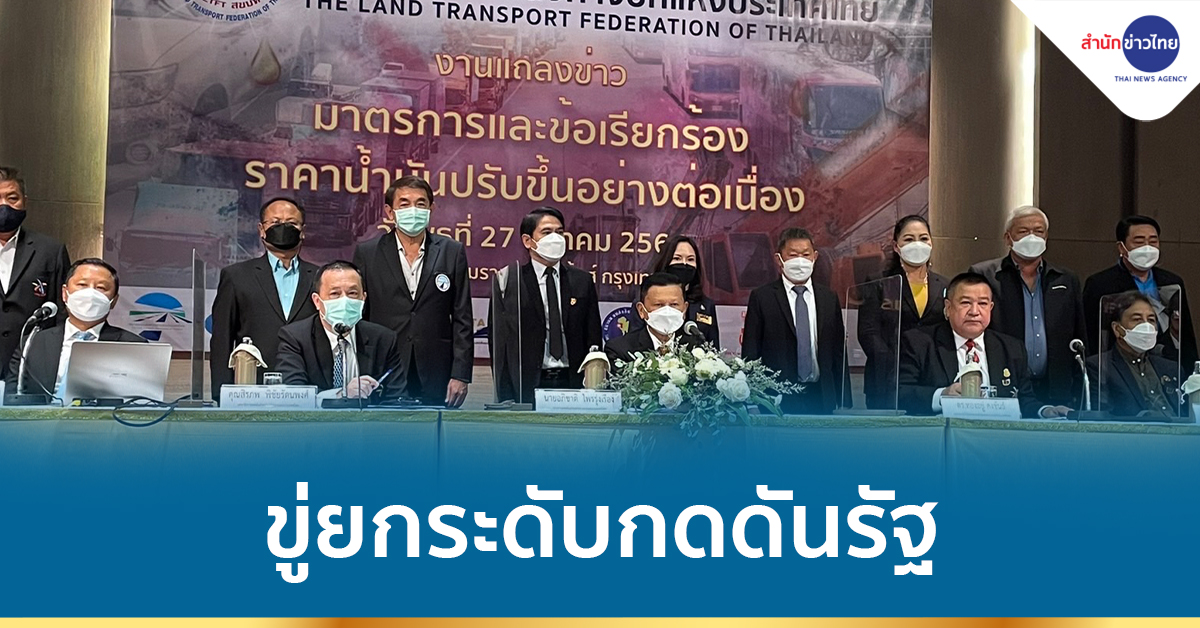 ผู้สื่อข่าวรายงานว่า เช้าวันนี้ แกนนำสหพันธ์ขนส่งทางบกแห่งประเทศไทย ได้ร่วมแถลงข่าว ยื่นข้อเสนอในส่วนของผู้ประกอบการขนส่งให้ภาครัฐ