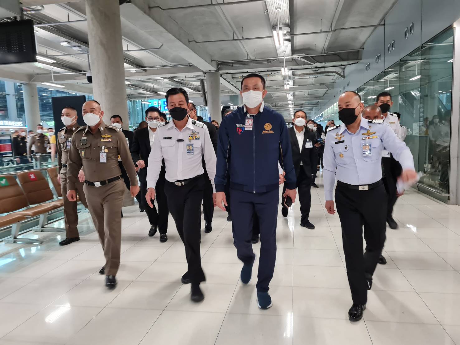นายศักดิ์สยาม ชิดชอบ รัฐมนตรีว่าการกระทรวงคมนาคม พร้อมด้วยผู้บริหารกระทรวงคมนาคม ลงพื้นที่ตรวจความเรียบร้อยการให้บริการผู้โดยสารของท่าอากาศยานสุวรรณภูมิ หลังการเปิดประเทศตามนโยบายของรัฐบาลวันแรก โดยระบุว่า รู้สึกพอใจกับมาตรการและขั้นตอนการคัดกรองในท่าอากาศยานสุวรรณภูมิที่มีความเข้มข้น ซึ่งก็ได้มีการกำชับให้เจ้าหน้าที่ปฏิบัติงานอย่างเต็มความสามารถ เพื่อลดความกังวลในเรื่องของการแพร่กระจายเชื้อโควิด-19 ตามที่ประชาชนเกิดความกังวล ซึ่งจากการประเมินมาตรการที่ดำเนินการอยู่ ถือว่าเป็นไปด้วยความเรียบร้อย ส่วนการเปลี่ยนระบบการคัดกรองผู้โดยสารเข้าประเทศ จากระบบ COE มาเป็นระบบ Thailand Pass มีความแตกต่างกันเพียง 45 วินาทีเท่านั้น ยอมรับว่า ในช่วงแรกที่มีการเปลี่ยนผ่านระบบ มีติดขัดบ้างเล็กน้อย โดยขอเวลา 7 วัน ในการสรุปข้อมูลให้มีความชัดเจนมากยิ่งขึ้น เพื่อให้ระบบที่ดำเนินการอยู่มีความลงตัวมากที่สุด ส่วนที่หลายฝ่ายกังวลว่า ระบบ Thailand Pass จะป้องกันความเสี่ยงได้น้อยกว่าระบบ COE เรื่องดังกล่าวไม่เป็นปัญหา เนื่องจากใช้ข้อมูลชุดเดียวกันในการคัดกรองผู้โดยสาร พร้อมย้ำว่า ภาพรวมการดำเนินงานในวันนี้ อยู่ในเกณฑ์ที่น่าพอใจ และจะนำข้อบกพร่องกลับมาปรับใช้ เพื่อให้การเปิดประเทศรับนักท่องเที่ยวชาวต่างชาติในครั้งนี้มีความปลอดภัยต่อนักท่องเที่ยวชาวต่างชาติและประชาชนคนไทยมากที่สุด