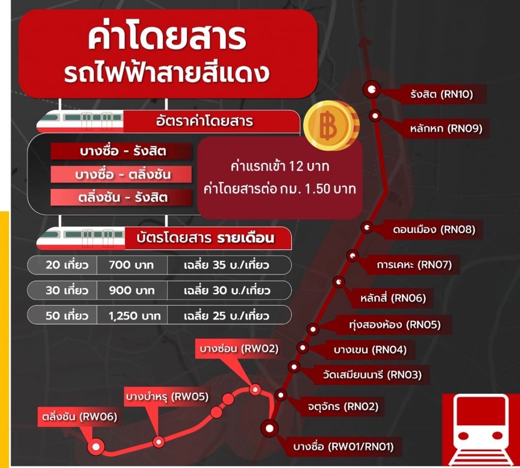 ที่ประชุมได้รับทราบผลการกำหนดอัตราค่าโดยสาร ความพร้อมเข้าสู่ระบบตั๋วร่วม บัตรโดยสารในการเดินทางร่วม โดยกำหนดอัตราค่าโดยสารรถไฟชานเมือง (สายสีแดง) ใน 3 ปีแรกจะมีค่าแรกเข้า 12 บาท และค่าโดยสาร 1.50 บาท/กิโลเมตร ทั้งนี้ ได้มอบหมายให้ รฟท. พิจารณากำหนดแนวทางเพื่อลดภาระทางการเงิน รวมทั้งแนวทางการผ่อนผันดอกเบี้ยใน 3 ปีแรกของการเปิดให้บริการ และการเตรียมความพร้อมการเข้าสู่ระบบตั๋วร่วม ภายใต้มาตรฐาน EMV สามารถรองรับการใช้งานในรถเมล์ ขสมก. และเรือโดยสาร MINE Smart Ferry รวมทั้ง เปิดใช้งานกับรถไฟฟ้าสายสีน้ำเงินและสายสีม่วงได้ ภายในเดือนกุมภาพันธ์ 2565 และยังได้รับทราบแผนการใช้บัตรโดยสารในการเดินทางร่วม โดย บมจ.ธนาคารกรุงไทย ได้หารือร่วมระหว่าง รฟท. การรถไฟฟ้าขนส่งมวลชนแห่งประเทศไทย (รฟม.) ขสมก. และบริษัท ทางด่วนและรถไฟฟ้ากรุงเทพ จำกัด (มหาชน) เพื่อให้เกิดตั๋วร่วมระหว่างหน่วยงาน ตามนโยบายของกระทรวงคมนาคม เพื่อส่งเสริมการเดินทางร่วมระหว่างระบบขนส่งมวลชนรูปแบบต่างๆ ปัจจุบันอยู่ระหว่างการพิจารณาเพื่อหาข้อสรุปแนวทางร่วมกัน ทั้งรูปแบบบัตร เทคนิคบัตร และเงื่อนไขการกำหนดราคา พร้อมทั้งพิจารณาข้อกำหนดส่วนแบ่งรายได้ การเติมเงิน จุดจำหน่ายบัตร และการแบ่งจ่ายรายได้ของ Operators