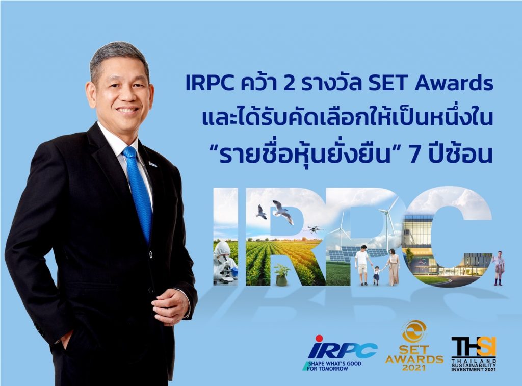 นายชวลิต ทิพพาวนิช ประธานเจ้าหน้าที่บริหารและกรรมการผู้จัดการใหญ่ บริษัท ไออาร์พีซี จำกัด (มหาชน) หรือ IRPCเปิดเผยว่าบริษัทได้ รับมอบ 2 รางวัล SET Awards ประจำปี 2564 ได้แก่ รางวัลเกียรติยศแห่งความสำเร็จด้านความยั่งยืน (Sustainability Awards of Honor) และรางวัลบริษัทจดทะเบียนด้านนักลงทุนสัมพันธ์ยอดเยี่ยม (Best Investor Relations Awards) จัดโดยตลาดหลักทรัพย์แห่งประเทศไทย ร่วมกับวารสารการเงินธนาคาร โดยรางวัลเกียรติยศ แห่งความสำเร็จด้านความยั่งยืน (Sustainability Awards of Honor) เป็นรางวัลที่มอบให้แก่บริษัทจดทะเบียนที่มีการดำเนินธุรกิจตามแนวทางการพัฒนาอย่างยั่งยืน โดยมีการกำกับดูแลกิจการที่ดี คำนึงถึงผู้มีส่วนได้เสียอย่างรอบด้านเพื่อให้ธุรกิจ มีการเติบโตด้านเศรษฐกิจ ควบคู่ไปกับการพัฒนาสังคมและสิ่งแวดล้อมอย่างสมดุล เพื่อเป็นแบบอย่างสำหรับบริษัท จดทะเบียนรายอื่น และส่งเสริมให้บริษัทจดทะเบียนดำเนินธุรกิจตามแนวทางความยั่งยืนต่อไป ซึ่งสะท้อนให้เห็นถึงเจตนารมณ์ของ IRPC ที่ให้ความสำคัญกับการบูรณาการความยั่งยืนในการดำเนินงาน คำนึงถึงสิ่งแวดล้อม สังคม ภายใต้หลักธรรมาภิบาล หรือ ESG (Environmental, Social and Governance) และรางวัลบริษัทจดทะเบียนด้านนักลงทุนสัมพันธ์ยอดเยี่ยม (Best Investor Relations Awards) ที่ถือเป็นความสำเร็จของ IRPC ในฐานะบริษัทจดทะเบียนในตลาดทุนไทยที่มีความโดดเด่นด้านการดำเนินกิจกรรมนักลงทุนสัมพันธ์ และมีการดำเนินกิจการตามหลักธรรมาภิบาล ที่โปร่งใส ตรวจสอบได้ ได้รับการยอมรับจากนักวิเคราะห์และนักลงทุนในประเทศ