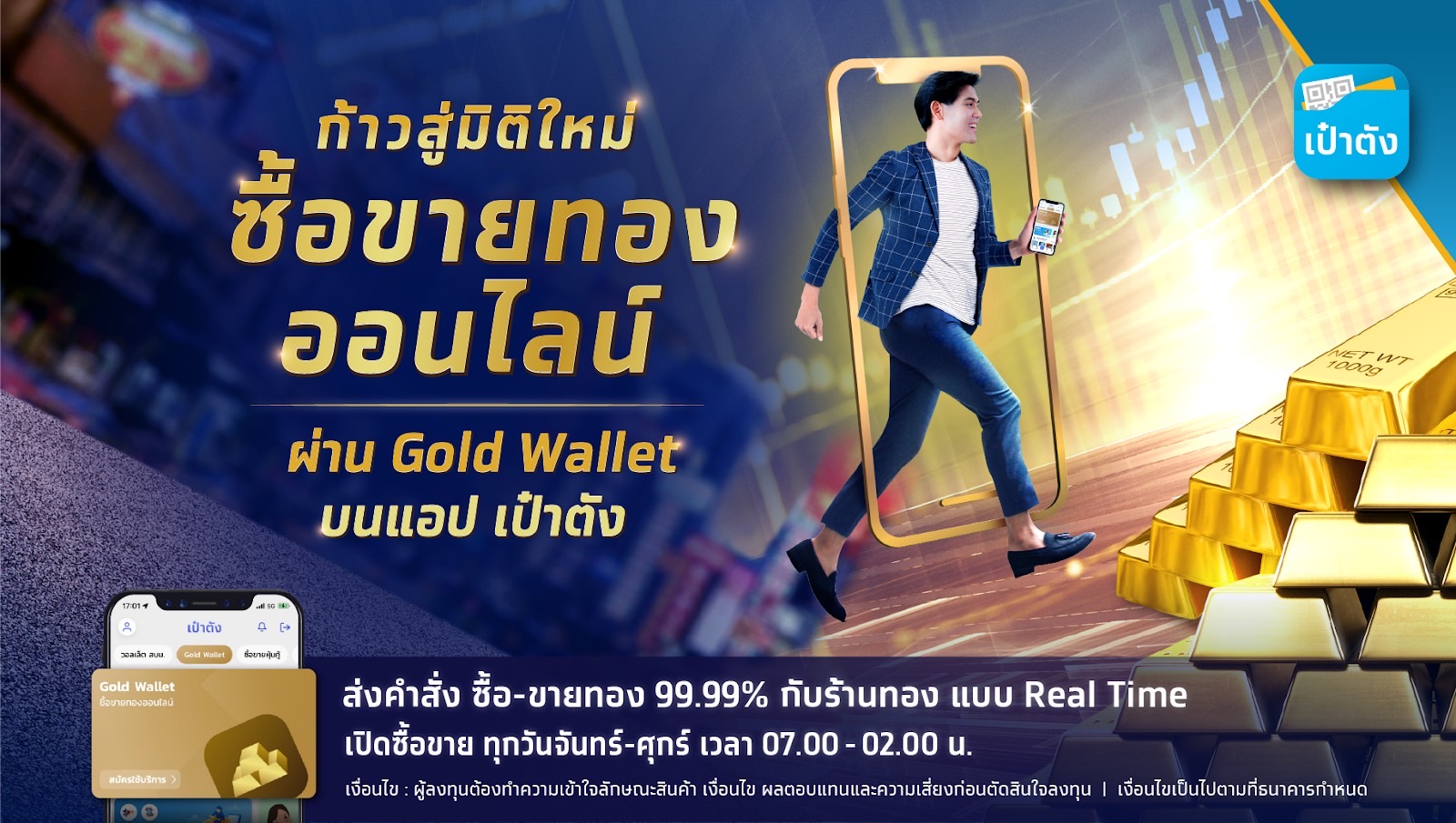 นายรวินทร์ บุญญานุสาสน์ รองกรรมการผู้จัดการใหญ่ สายงานธุรกิจตลาดเงินตลาดทุน ธนาคารกรุงไทย เปิดเผยว่า หลังจากธนาคารได้เปิดบริการ “Krungthai Gold Wallet” บริการซื้อขายทองคำออนไลน์แบบครบวงจรครั้งแรกในประเทศไทย บนแอปพลิเคชัน “เป๋าตัง” ซึ่งเป็น Thailand Open Digital Platform ได้รับการพัฒนาโดย อินฟินิธัส บาย กรุงไทย (Infinitas by Krungthai) โดยนำร่องร่วมกับ MTS GOLD แม่ทองสุก ให้บริการตั้งแต่วันที่ 25 ตุลาคมที่ผ่านมา พบว่าผู้ลงทุนให้การตอบรับเป็นอย่างดี มีผู้ลงทุนเปิด Gold Wallet เพื่อซื้อขายทองคำบนแอปฯเป๋าตังแล้วกว่า 12,000 ราย มียอดซื้อขายแล้วกว่า 500 ล้านบาท เป็นการพลิกโฉมการลงทุนทองคำในประเทศไทยอย่างแท้จริง ตอบโจทย์การลงทุนยุคใหม่ ทำให้สามารถลงทุนซื้อ-ขายทองคำได้ ทุกที่ สะดวก รวดเร็ว และปลอดภัย ลงทุนขั้นต่ำเพียง 0.1 ออนซ์ หรือประมาณ 6,000 บาท (อ้างอิงอัตราแลกเปลี่ยนและราคาทองคำ วันและเวลาที่ทำรายการ ซื้อ-ขายทองบน Gold Wallet) ซื้อขายทองด้วยสกุลเงินดอลลาร์สหรัฐ โดยอ้างอิงราคาตลาดโลก เปิดให้ซื้อขายในช่วงวันทำการ จันทร์-ศุกร์ ตั้งแต่เวลา 7.00-02.00 น. เพื่อให้นักลงทุนซื้อ-ขายได้อย่างต่อเนื่อง ในเวลาที่ตลาดต่างประเทศเปิดทำการ ทำให้นักลงทุนไม่พลาดโอกาสจากการปรับตัวขึ้นลงของราคาทองคำในตลาดโลก