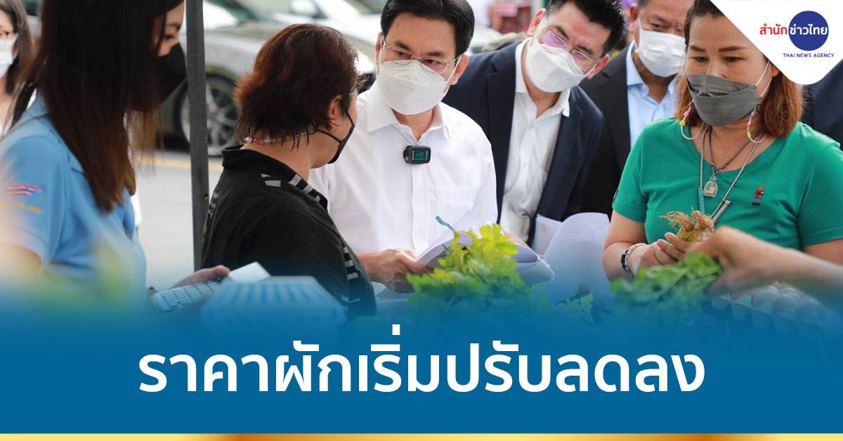 นายวัฒนศักย์ เสือเอี่ยม อธิบดีกรมการค้าภายใน เปิดเผยว่า จากการติดตามสถานการณ์ ปริมาณและราคาผักในตลาดทั้งระดับค้าส่งและค้าปลีก พบว่า ปริมาณผักเริ่มเข้าสู่ตลาดกลาง ได้แก่ ตลาดไท ตลาดสี่มุมเมือง และตลาดศรีเมือง เพิ่มมากขึ้นจากช่วงปลายสัปดาห์ก่อนนี้ร้อยละ 20-30 ส่งผลให้ราคาผักเริ่มปรับตัวลดลง หากดูวันที่ 5 พ.ย. 64 ราคาผักสดคละที่ตลาดยิ่งเจริญ ตลาดนครหลวง ตลาดเวิลด์มาร์เก็ต และตลาดมีนบุรี มีดังนี้ คือ ราคาผักชี อยู่ที่กิโลกรัมละ 250-260 บาท ลดลงจากสัปดาห์ก่อนที่เฉลี่ย กก.ละ 320 บาท ราคาขึ้นฉ่าย อยู่ที่ ก.ก.ละ 140-280 บาท ลดลงจาก สัปดาห์ก่อนที่เฉลี่ย ก.ก.ละ 318 บาท ผักกาดหอม อยู่ที่ ก.ก.ละ 55 ถึง 100 บาท ลดลงจากสัปดาห์ก่อนที่เฉลี่ย ก.ก.ละ 118 บาท ผักบุ้ง ราคา ก.ก.ละ 25-30 บาท ลดลงจากสัปดาห์ก่อนเฉลี่ย กก.ละ 40 บาท ผักกวางตุ้ง ราคา กก.ละ 25 ถึง 30บาท ลดลงจากสัปดาห์ก่อนที่เฉลี่ย กก ละ 35 บาท