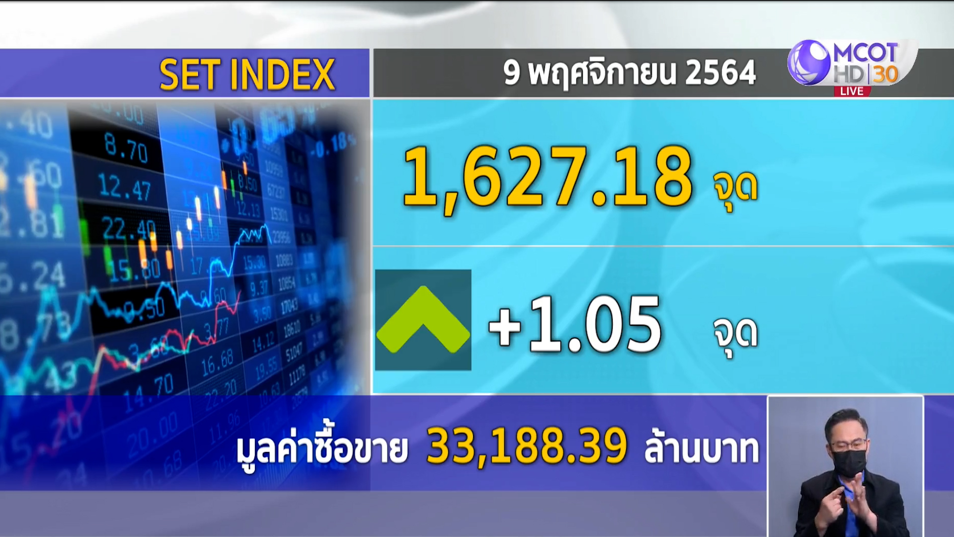 กทม. 9 พ.ย.- หุ้นไทยช่วงเช้าไปไหนไม่ได้ไกล ล่าสุดดัชนีเคลื่อนไหวอยู่ที่ 1,627.18 จุด +1.05 จุด มูลค่าการซื้อขาย 33,188.39 ล้านบาท นักลงทุนรอการประชุม กนง.ในวันพรุ่งนี้ และติดตามภาวะเงินเฟ้อ