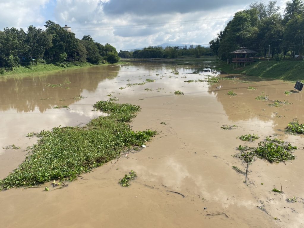 ทางโครงการส่งน้ำและบำรุงรักษาเพชรบุรีรายงานผลการตรวจวัดน้ำที่สถานีวัดน้ำต่างๆ ว่า น้ำในลำห้วยแม่ประจันต์มีแนวโน้มเพิ่มขึ้น แต่น้ำในแม่น้ำเพชรบุรีที่สถานีตำบลกลัดหลวงทรงตัว แต่ได้ให้เขื่อนแก่งกระจานปิดการระบายน้ำลงแม่น้ำเพชรบุรีไปแล้วเพื่อลดที่จะไหลลงมาที่เขื่อนเพชร ส่วนแนวทางบริหารจัดการน้ำหลากที่มาถึงเขื่อนเพชรคือ ให้ปรับเพิ่มการระบายน้ำจากเขื่อนเพชรลงแม่น้ำเพชรบุรีมากกว่า 150 ลบ.ม .ต่อวินาที รวมถึงระบายน้ำเข้าคลองส่งน้ำสายใหญ่ทั้ง 4 สาย และคลองระบายน้ำ D.9 รวมประมาณ 120 ลบ.ม .ต่อวินาที ซึ่งการระบายน้ำดังกล่าวอาจส่งผลให้น้ำในแม่น้ำเพชรบุรีล้นตลิ่งและไหลเข้าท่วมในพื้นที่ลุ่มต่ำ แล้วไหลถึงเขตเทศบาลเมืองเพชรบุรี ในเวลาประมาณ 16.00 น.