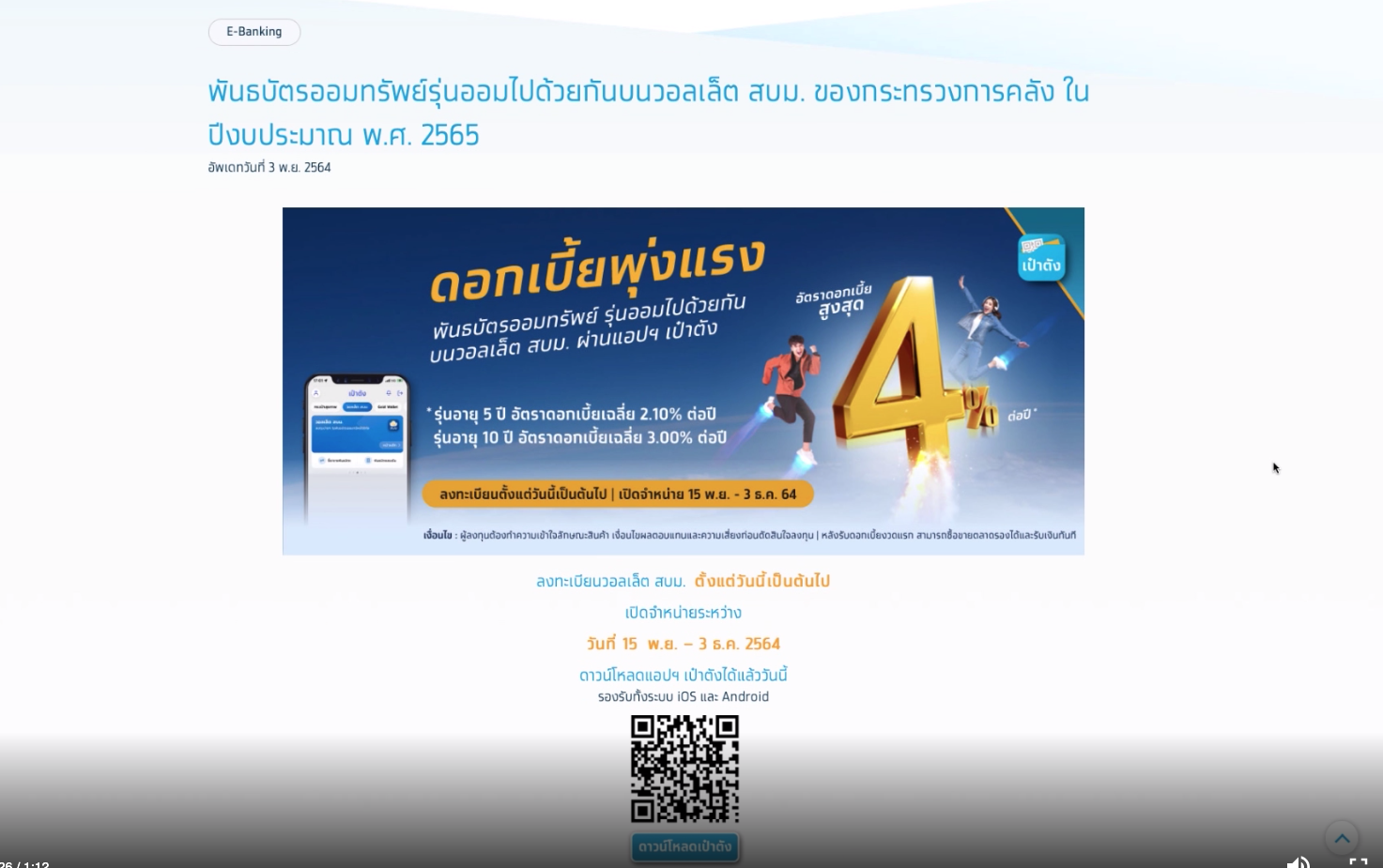 ไตรศุลี ไตรสรณกุล รองโฆษกประจำสำนักนายกฯ กล่าวว่า หลังจากกระทรวงการคลัง ประกาศออกพันธบัตรออมทรัพย์รุ่น ออมไปด้วยกัน วงเงินรวม 80,000 ล้านบาท ซึ่งในจำนวนนี้มีวงเงิน 10,000 ล้านบาท ให้ซื้อขายบนแอปฯ เป๋าตัง ภายใต้ชื่อ พันธบัตรออมทรัพย์วอลเล็ต สบม.รุ่น ออมไปด้วยกัน จำนวน 2 รุ่น คือ รุ่นอายุ 5 ปี ดอกเบี้ยสูงสุด 3% ต่อปี และอายุ 10 ปี ดอกเบี้ยสูงสุด 4% ต่อปี จ่ายดอกเบี้ยทุก 3 เดือน เริ่มจำหน่ายวันแรกคือพรุ่งนี้ถึงวันที่ 3 ธันวาคม
