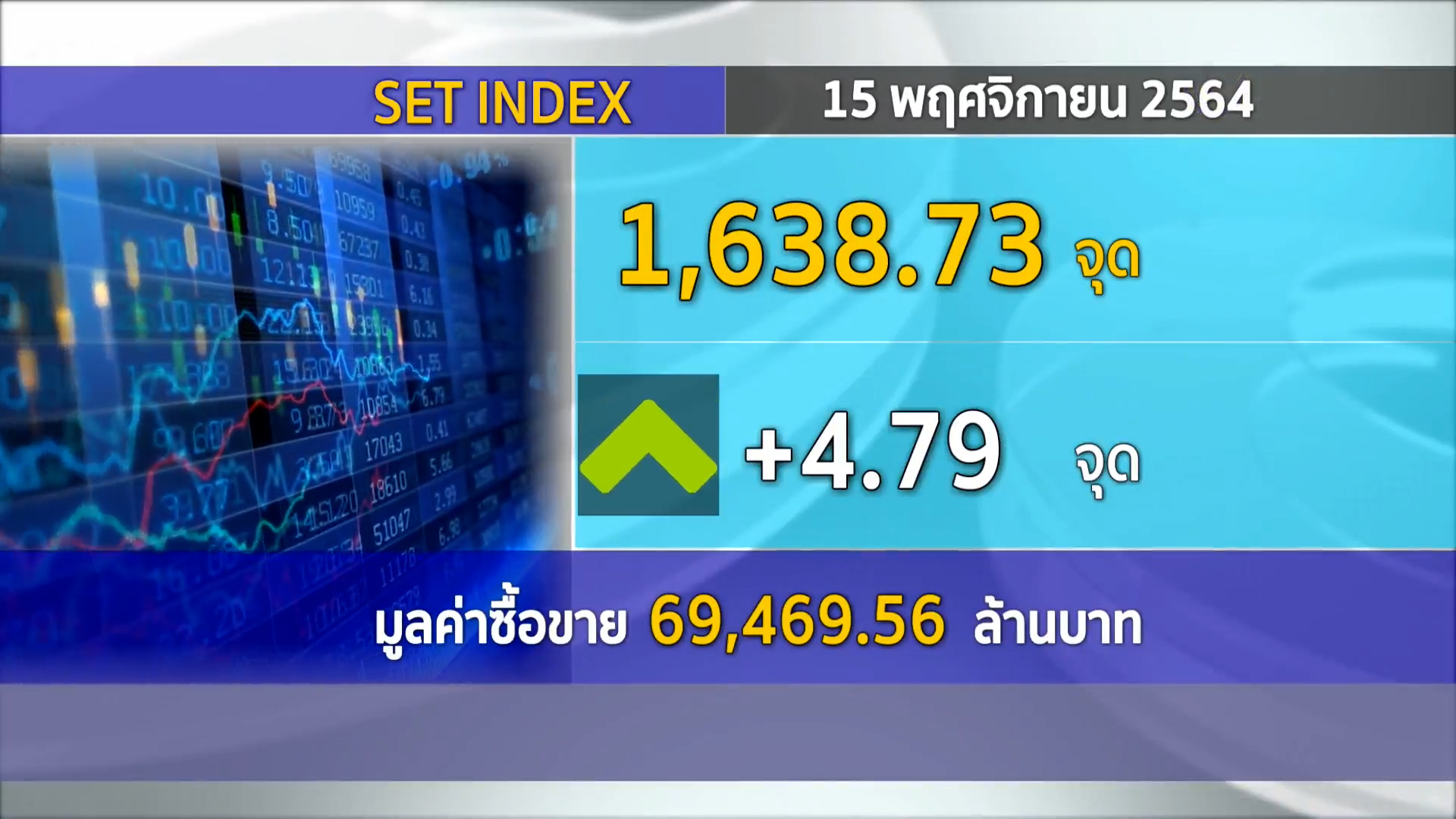 กทม. 15 พ.ย.-ตลาดหลักทรัพย์ ปิดวันนี้ที่ระดับ 1,638.73 จุด เพิ่มขึ้น 4.79 จุด (+0.29%) มูลค่าการซื้อขาย 69,469.56 ล้านบาท แกว่งไซด์เวย์คล้ายภูมิภาคเลือกเล่นรายตัวตามปัจจัยเฉพาะ