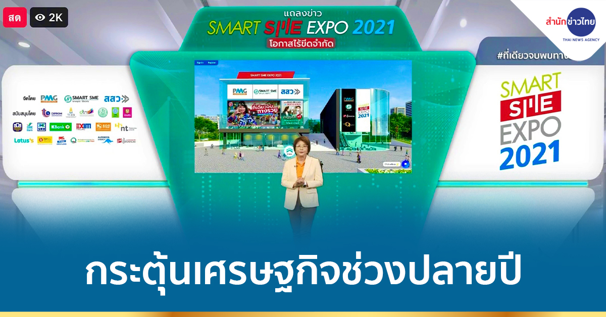 กรุงเทพฯ 18 พ.ย. -Smart SME EXPO 2021 หวังดึงภาครัฐและภาคเอกชน สถาบันการเงิน กระตุ้นกำลังซื้อช่วงปลายปี ร่วมสร้างผู้ประกอบการใหม่ ผลักดันนวัตกรรม-เทคโนโลยี ฟื้นธุรกิจหลังโควิด-19