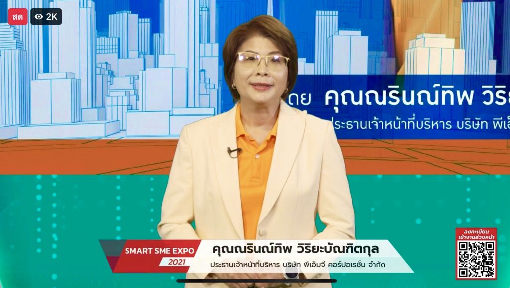 คุณณรินณ์ทิพ วิริยะบัณฑิตกุล ประธานเจ้าหน้าที่บริหาร บริษัท พีเอ็มจี คอร์ปอเรชั่น จำกัด ผู้จัดงาน Smart SME EXPO 2021 กล่าวว่า การจัดงาน Smart SME EXPO 2021 ระหว่างวันที่ 2-5 ธันวาคม 2564 ฮอลล์ 6 อิมแพ็คเมืองทองธานี ภายใต้มาตรการป้องกันการแพร่ระบาดของโรคโควิด-19 อย่างเคร่งครัด พร้อมจัดงานในรูปแบบผสมผสานทั้ง On Ground และ Online Event โดยเพิ่มเติมรูปแบบบูธเสมือนจริง. เปิดโอกาสให้ผู้ประกอบการ รวมทั้งผู้สนใจที่ไม่สะดวกเดินทางเข้าร่วมงาน เข้าถึงสินค้าและบริการต่าง ๆภายในงานได้ไม่จำกัด ผ่านระบบออนไลน์ เพื่อสร้างแรงซื้อขายธุรกิจแฟรนไชส์ภายในงาน รวมทั้งการเจรจาจับคู่ธุรกิจกับคู่ค้าตัวจริงทั้งในและต่างประเทศ ผ่านรูปแบบ Face to Face และ ระบบ Zoom ปีนี้ตั้งเป้าหมายการเจรจาจับคู่ธุรกิจภายในงานไม่น้อยกว่า 150 คู่ โดยเตรียมพร้อมด้านมาตรการการป้องกันของกรมอนามัย กระทรวงสาธารณสุข ภายใต้หลักการ “ชื้อขายธุรกิจอย่างสบายใจปลอดภัยทั้งผู้จัดแสดงสินค้าและผู้เยี่ยมชมงาน”