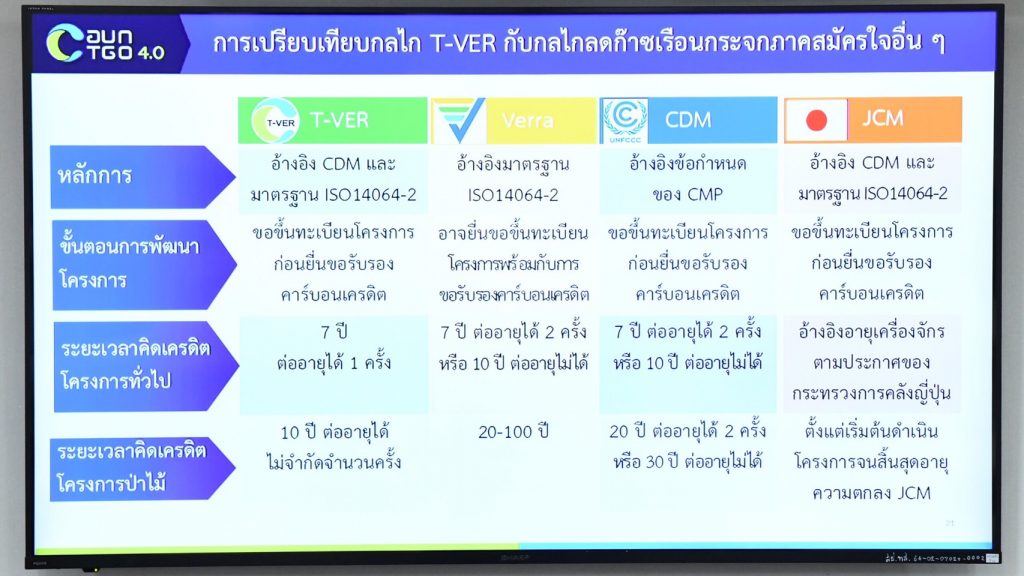 ที่ประชุมได้รับทราบถึงผลสรุป COP26 กฎกติกาการดำเนินงานตาม Article 6 ภายใต้ความตกลงปารีส และการเตรียมความพร้อมแผนการพัฒนามาตรฐาน T-VER สู่ระดับสากล กลไกการรับรองภาคป่าไม้ระดับสากล การพัฒนา Thailand Voluntary Carbon Market Development และ แผนการปรับปรุงระบบ Registry ของประเทศไทย โดยได้พิจารณาถึงแนวทางการลดก๊าซเรือนกระจก และการสร้างความน่าเชื่อถือในกระบวนการลดก๊าซเรือนกระจก ด้วยการใช้กลไกการตลาด ที่มุ่งเน้นตลาดภายในประเทศ และการส่งเสริมความร่วมมือกับภาคเอกชน ซึ่งปัจจุบันได้มีองค์กรชั้นนำของประเทศที่มีการตั้งเป้าหมาย Net Zero แล้วถึง 23 องค์กร นอกจากนี้ ยังรวมถึงการส่งเสริมสนับสนุนรณรงค์ให้ภาคการท่องเที่ยวและการจัดกิจกรรมพิเศษ (EVENT) ต่าง ๆ ดำเนินกิจกรรมในรูปแบบ Carbon Neutral ด้วย