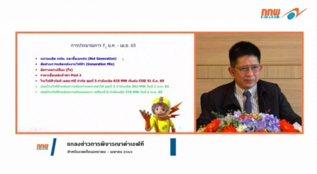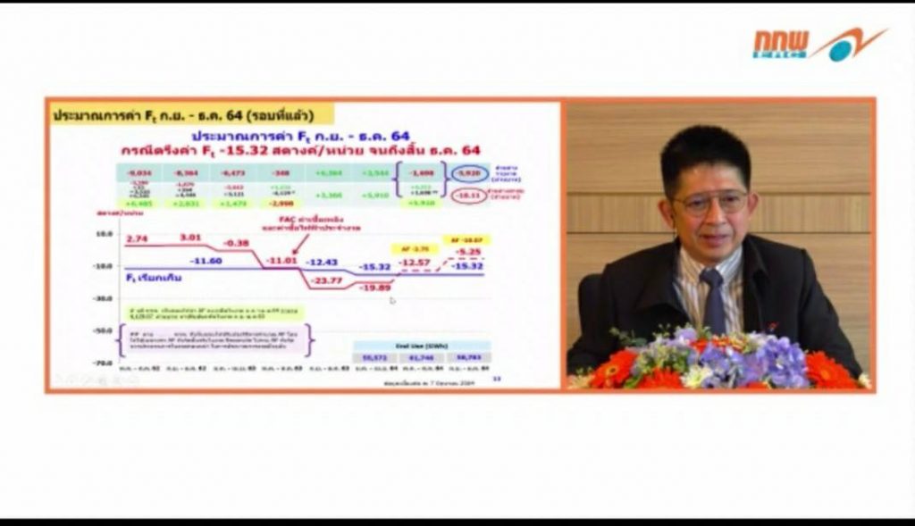 นายคมกฤช ตันตระวาณิชย์ เลขาธิการสำนักงานคณะกรรมการกำกับกิจการพลังงาน (สำนักงาน กกพ.) ในฐานะโฆษกคณะกรรมการกำกับกิจการพลังงาน (กกพ.) เปิดเผยว่า เมื่อวันที่ 17 พฤศจิกายน 2564 กกพ. มีมติให้ปรับค่าไฟฟ้าผันแปร (ค่าเอฟที) สำหรับการเรียกเก็บค่าไฟฟ้าในรอบเดือนมกราคม – เมษายน 2565 โดยให้เรียกเก็บที่ 1.39 สตางค์ต่อหน่วย ส่งผลให้อัตราค่าไฟฟ้าเฉลี่ยอยู่ที่ 3.78 บาทต่อหน่วย หรือเพิ่มขึ้นร้อยละ 4.63 จากงวดปัจจุบัน ทั้งนี้เป็นผลจากอัตราแลกเปลี่ยนที่อ่อนค่าลง การนำเข้าพลังงานไฟฟ้าจากต่างประเทศในส่วนของพลังน้ำลดลงตามฤดูกาลและการผลิตไฟฟ้าจากถ่านลิกไนต์ลดลงตามแผนการปลดโรงไฟฟ้าแม่เมาะ ส่งผลให้สามารถเดินเครื่องโรงไฟฟ้าที่มีต้นทุนราคาถูกลดลง นอกจากนั้นราคาก๊าซธรรมชาติ ซึ่งเป็นเชื้อเพลิงหลักในการผลิตไฟฟ้าปรับตัวเพิ่มสูงขึ้นมากตามภาวะราคาน้ำมันขาขึ้นในตลาดโลก และปริมาณนำเข้าก๊าซธรรมชาติเหลว (LNG) ที่มากขึ้น เพื่อทดแทนปริมาณก๊าซธรรมชาติในอ่าวไทยที่ลดลงเนื่องจากเป็นช่วงปลายสัมปทาน