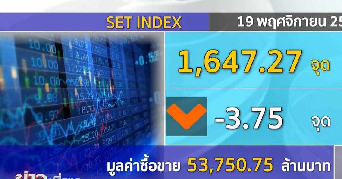 กทม. 19 พ.ย.-ภาวะตลาดหุ้นไทยภาคเช้า ดัชนีแกว่งตัวกรอบแคบๆ แม้ตลาดจะได้แรงหนุนคาดการณ์เศรษฐกิจไทยที่น่าจะขยายตัว และกำไรบริษัทฟื้นตัวขึ้น แต่ความกังวลเฟดอาจปรับขึ้นอัตราดอกเบี้ยเร็วกว่าคาด ส่งผลให้ Fund flow ผันผวน ดัชนีช่วงเที่ยงอยู่ที่ 1,647.27 จุด ลดลง 3.75 จุด มูลค่าซื้อขาย 53,750.75 ล้านบาท