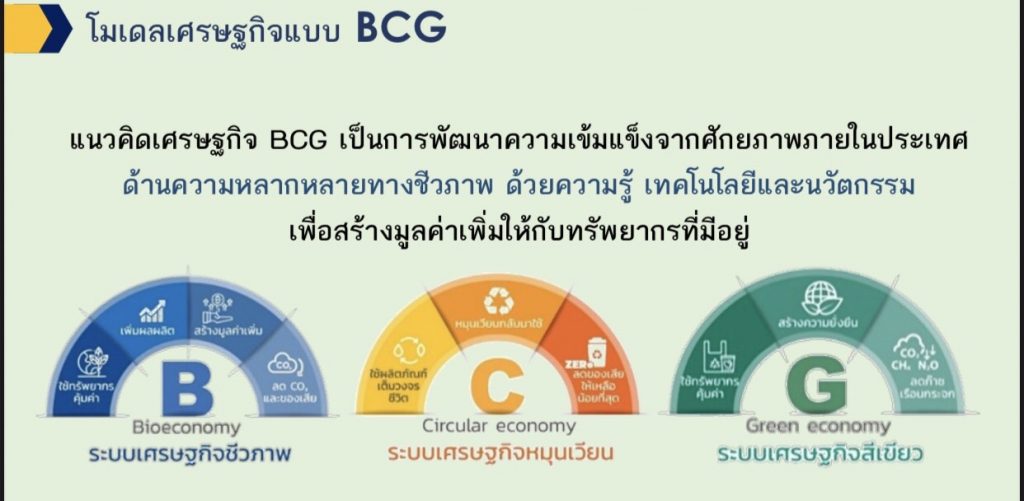“โมเดลเศรษฐกิจ BCG จะเป็นแนวทางในการพัฒนาและฟื้นฟูเศรษฐกิจของประเทศ โดยการใช้จุดแข็งที่ไทยมีความหลากหลายทางชีวภาพ ด้วยการสร้างความสมดุลจากการใช้ประโยชน์จากทรัพยากรธรรมชาติควบคู่ไปกับการอนุรักษ์ ทั้งนี้ การพัฒนาเศรษฐกิจตามโมเดล BCG ของไทย จะนำไปสู่การปรับกระบวนทัศน์ และการพัฒนาเศรษฐกิจที่เป็นมิตรต่อสิ่งแวดล้อม สอดคล้องกับเป้าหมาย SDGs และคาดว่าในอีก 5 ข้างหน้าอุตสาหกรรม BCG ของไทยจะมีมูลค่าร้อยละ 25 ของ GDP ซึ่งบีโอไอพร้อมเป็นส่วนหนึ่งในการขับเคลื่อนนโยบายการส่งเสริมการลงทุนที่จะนำเป้าหมายดังกล่าวให้เกิดเป็นรูปธรรม เพื่อการพัฒนาเศรษฐกิจให้เติบโตอย่างสมดุลและยั่งยืน” เลขาธิการบีโอไอ กล่าว
