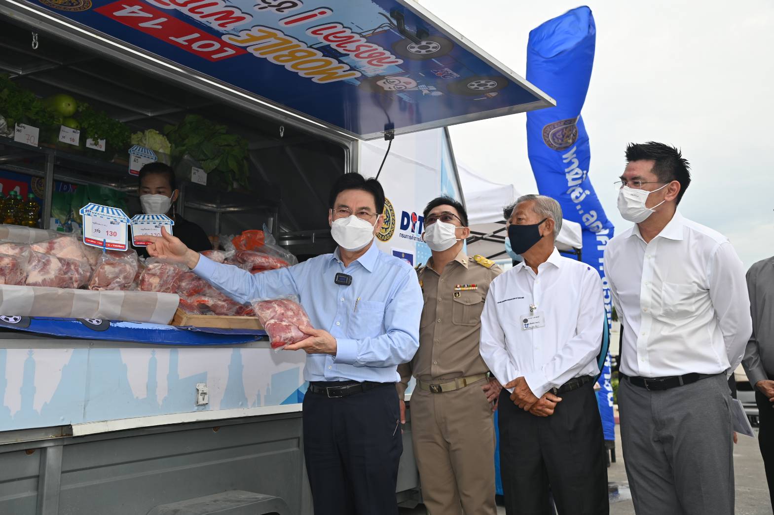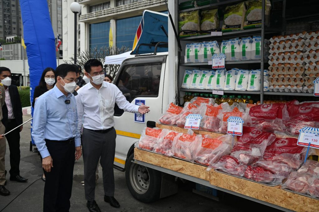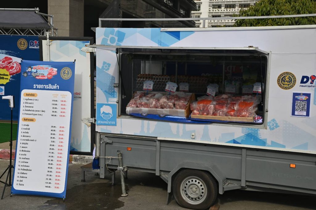 สำหรับกรุงเทพมหานคร นอกจากจุดที่จำหน่าย ณ ที่ตั้ง อีกส่วนหนึ่งจะเป็นรถโมบาย โดยนอกจากเป็นหมูเนื้อแดง จะมีผักอีก 17 ชนิด ขายราคาส่ง เช่น ผักชี จากก่อนหน้านี้ที่กิโลกรัมละ 400 บาท ตอนนี้ราคาตลาดเหลือกิโลกรัมละ 120 บาท และจุดจำหน่ายของรถโมบาย กิโลกรัมละ 70 บาท และข้าวหอมมะลิ 5 กิโลกรัม ถุงละ 120 บาท น้ำมันปาล์ม ขวดละ 48 บาท ไข่ไก่แผงละ 30 ฟอง ราคา 80 บาท น้ำตาลทรายขาวกิโลกรัมละ 18 บาท โดยพี่น้องประชาชนที่สนใจสามารถตรวจสอบได้ว่ารถโมบายจะไปที่ไหน และจุดจำหน่ายหมูราคาถูก จำหน่ายที่จุดใดบ้าง ในเว็บไซต์กรมการค้าภายใน หรือเข้าไปที่ LINE OFFICIAL @Mobilepanich โมบายพาณิชย์ลดราคา! ช่วยประชาชน เริ่มตั้งแต่วันนี้ถึง 31 ธันวาคม 2564 และจะติดตามสถานการณ์ต่อไป ถ้าสถานการณ์กลับเข้าสู่สภาวะปกติ จะยุติการจำหน่าย เนื่องจากกระทรวงพาณิชย์ต้องการเห็นกลไกตลาดเดินหน้าตามปกติไม่เข้าไปแทรกแซงโดยไม่จำเป็น นอกจากช่วงที่เกิดภาระกับพี่น้องประชาชน จะเข้าไปช่วยเพื่อดึงราคาลงให้มีทางเลือกหาซื้อสินค้าราคาถูกได้ เช่นเดียวกับหมูเนื้อแดงและผักก่อนหน้านี้ ซึ่งคาดว่าจะช่วยลดค่าครองชีพได้ 70-100 ล้านบาท.-สำนักข่าวไทย