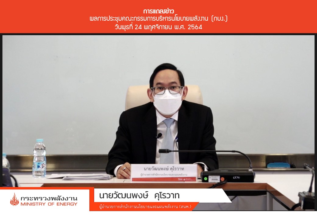 นายวัฒนพงษ์ คุโรวาท ผู้อำนวยการสำนักงานนโยบายและแผนพลังงาน (สนพ.) เปิดเผยภายหลังการประชุมคณะกรรมการบริหารนโยบายพลังงาน (กบง.) ซึ่งมี รมว.พลังงานเป็นประธาน วันนี้ (24 พ.ย.)ว่า ที่ประชุมรับฟังข้อเสนอแนะของภาคประชาชน รวมทั้งผู้ประกอบการรถบรรทุก ในการดูแลราคาน้ำมันดีเซล ดังนั้น กบง.จึงมีมติ ลดสัดส่วนผสมน้ำมันไบโอดีเซล ในดีเซล เหลือเพียง สูตรเดียว คือ บี 7 จากเดิม มีการผสมบี7, บี 10 และ บี 20 โดยจะมีผล 4 เดือน ( ธ.ค.64-มี.ค.65 ) ทำให้ราคาน้ำมันดีเซลจะอยู่ที่ราว 28 บาท/ลิตร ในขณะเดียวกัน ก็ขอความร่วมมือ กับผู้ค้าน้ำมันยังคงช่วยดูแลค่าการตลาดดีเวล ไม่เกิน 1.40 บาท/ลิตร โดยกรอบการดูแลดีเซลนั้น ยังคงอยู่ที่ไม่เกิน 30 บาท/ลิตร ต่อเนื่อง