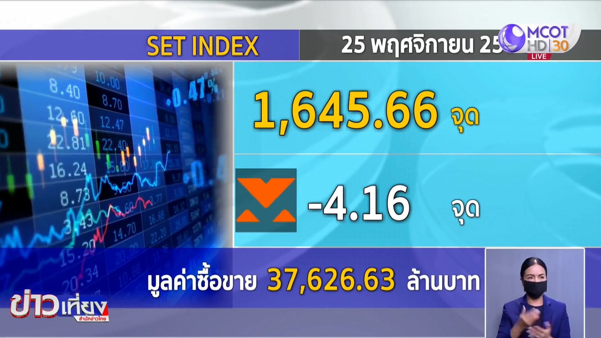 กทม. 25 พ.ย.-ตลาดหุ้นไทยช่วงเช้า เคลื่อนไหวในกรอบแคบๆ บวกขึ้นมาได้เล็กน้อย ส่วนช่วงเที่ยงดัชนีอยู่ที่ 1,645.66 จุด -4.16 จุด มูลค่าการซื้อขาย 37,626.63 ล้านบาท