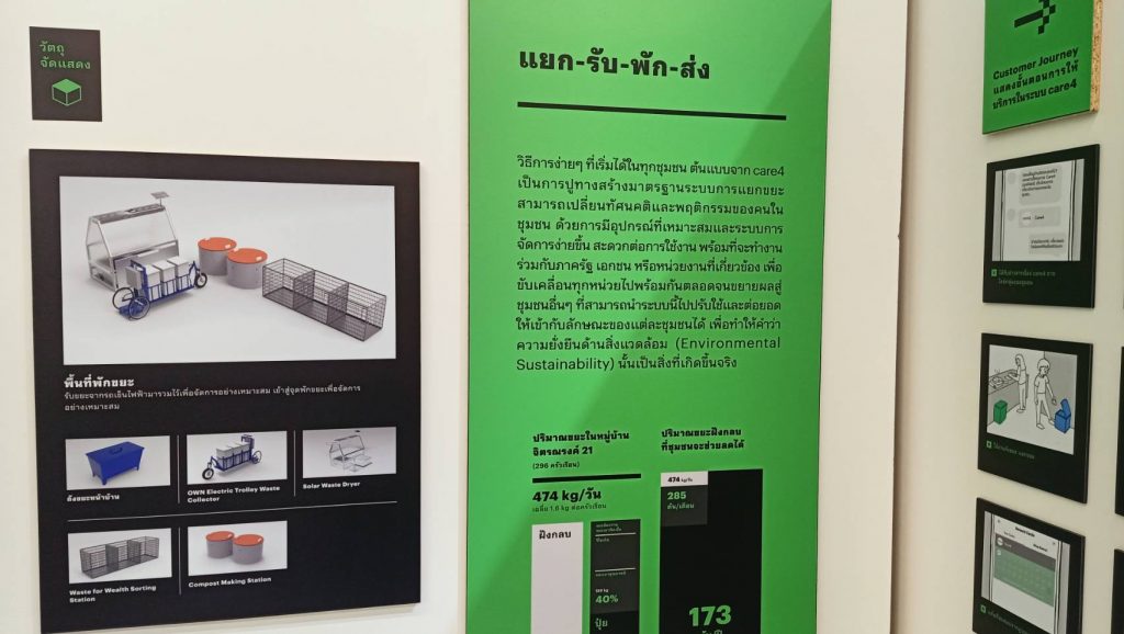 ทั้งนี้สำหรับ เนื้อหาและแพลตฟอร์มแยกขยะ 4 ต้นแบบ เช่น แพลตฟอร์ม Powerpick บริเวณพื้นที่ลานใบไม้บริษัทยิบอินซอย ถนนมหาพฤฒารามบางรักกรุงเทพฯ มีแนวคิดแก้ปัญหาขยะหลังผู้บริโภคจาก food delivery โดยจะเข้ามาคัดแยกบรรจุภัณฑ์อาหารและเครื่องดื่มพลาสติกเบารวมทั้งกระดาษในรูปแบบ pop up ที่มีบริการรับถุงแยกขยะรีไซเคิลด้วยตู้อัตโนมัติและเคาน์เตอร์เซอร์วิสพร้อมทำหน้าที่รับ บด ล้าง อบและแพ็กขยะสู่การแปรรูปเป็นเชื้อเพลิงขยะ และใช้จักรยาน ไฟฟ้าในการรับแยกขยะแบบเคลื่อนที่ผ่าน application ในการกำหนดเวลารับขยะถึงที่
