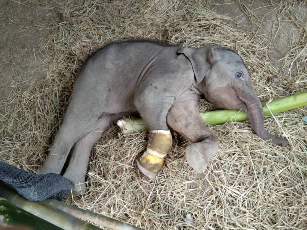 จันทบุรี 1 ธ.ค. – ทีมสัตวแพทย์ของกรมอุทยานฯ เคลื่อนย้าย “น้องขวากรัก” ลูกช้างป่าวัย 3 เดือนซึ่งบาดเจ็บจากกับดักบ่วงแร้วรัดขาและถูกยิง ไปรักษาและดูแลต่อที่สวนนงนุช (พัทยา) แล้ว โดยลูกช้างนอนหลับไปในกองฟางที่เจ้าหน้าที่ปูให้ท้ายรถกระบะ