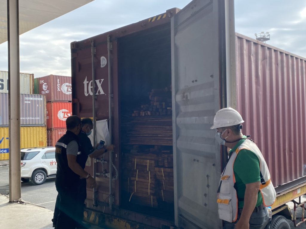 ท่าเรือคลองเตย 1 ธ.ค.- รมช.คลัง สั่งกรมศุลคุมเข้มส่งออกสินค้ากลุ่มเสี่ยง เสริมทีมตำรวจสุนัขดมกลิ่น หลังเฮโลอีนลอตใหญ่ ซุกซ่อนอยู่ในคอนเทนเนอร์ไม้ ส่งออกไปไต้หวันใช้ไทยเป็นทางผ่าน