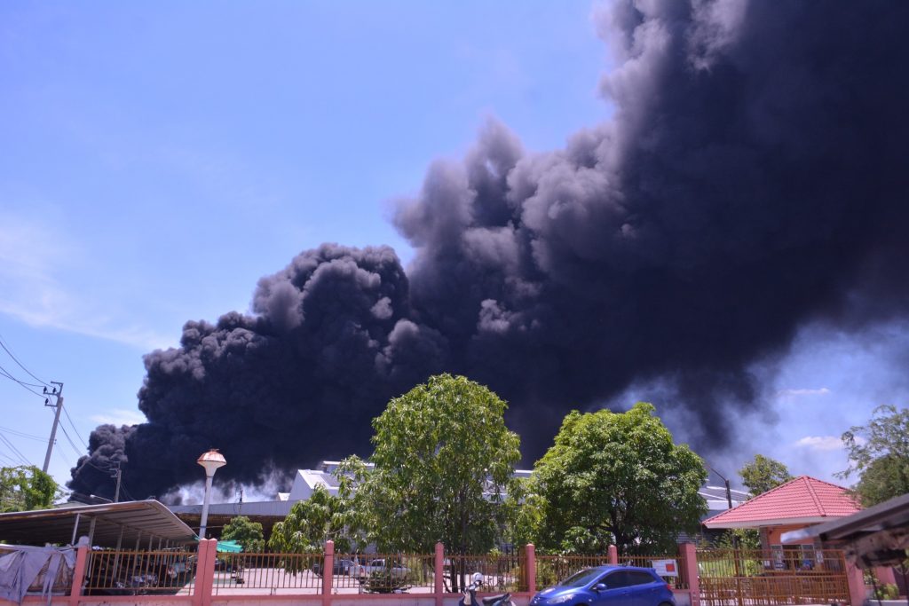 นายอรรถพลกล่าวต่อว่า เมื่อเกิดเหตุเพลิงไหม้แล้วจะมีการลุกลามอย่างรวดเร็วเนื่องจากพลาสติก น้ำมัน และสารเคมีตั้งต้นต่างๆ เป็นเชื้อเพลิงอย่างดี สามารถติดไฟได้ง่าย ให้ความร้อนสูง ทำให้ยากแก่การควบคุมและดับเพลิง ซึ่งก่อความเสียหายแก่ทรัพย์สินของผู้ประกอบการ มีผู้ได้รับบาดเจ็บและบางกรณีเสียชีวิต มีการแพร่กระจายการปนเปื้อนสารเคมีสู่สิ่งแวดล้อมเช่น น้ำผิวดิน น้ำใต้ดิน และมลพิษทางอากาศจากไอระเหยสารเคมีและเขม่าควันส่งผลกระทบต่อสุขภาพอนามัยของประชาชนที่อาศัยอยู่ใกล้เคียง โดยเฉพาะมลพิษทางอากาศที่เกิดจากการเผาไหม้ไม่สมบูรณ์ ได้แก่ คาร์บอนไดออกไซด์ (CO) คาร์บอนมอนออกไซด์ (CO2) ไนโตรเจนออกไซด์ (NOx) ซัลเฟอร์ออกไซด์ (Sox) ฝุ่นละอองขนาดเล็กกว่า 2.5 ไมครอน (PM2.5) และฝุ่นละอองขนาดเล็กกว่า 10 ไมครอน (PM10) มลพิษเหล่านี้จะส่งผลกระทบโดยตรงต่อระบบทางเดินหายใจของประชาชน