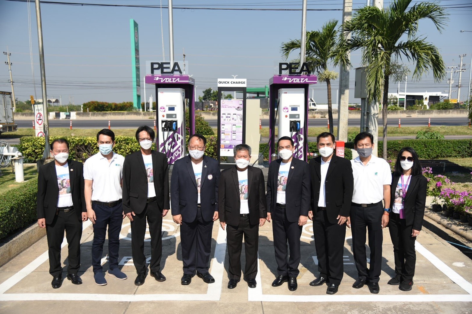 นายศุภชัย เอกอุ่น ผู้ว่าการการไฟฟ้าส่วนภูมิภาค พร้อมด้วย นายปรีชา สุทธิเลิศอรุณ กรรมการผู้จัดการ, บริษัท บางจาก กรีนเนท จำกัด และนายอนันต์ เลิศนิรัติวงษ์ ผู้จัดการอาวุโส พัฒนาธุรกิจค้าปลีก บมจ.บางจาก ร่วมพิธีเปิดให้บริการสถานีอัดประจุไฟฟ้า PEA VOLTA ครบ 73 แห่งในปี 2564 ณ สถานีอัดประจุไฟฟ้า PEA VOLTA บางจาก นาโคก (ขาออก) ตำบลนาโคก อำเภอเมือง จังหวัดสมุทรสาคร