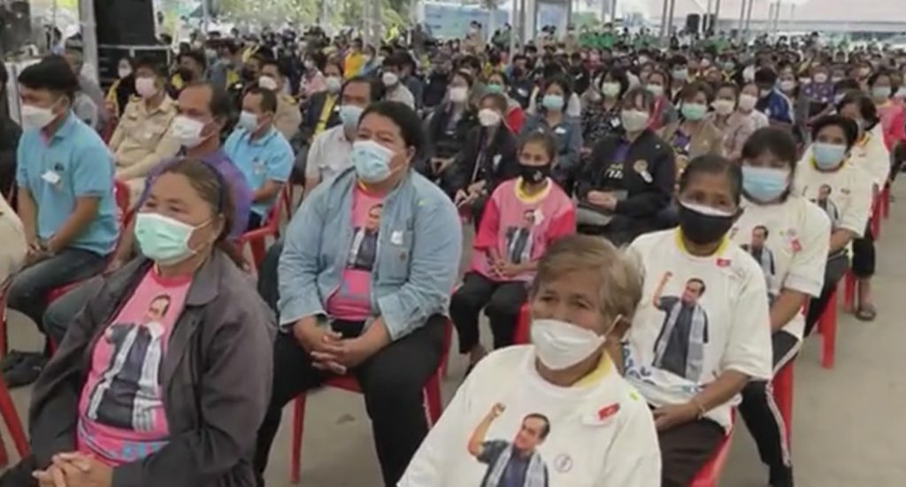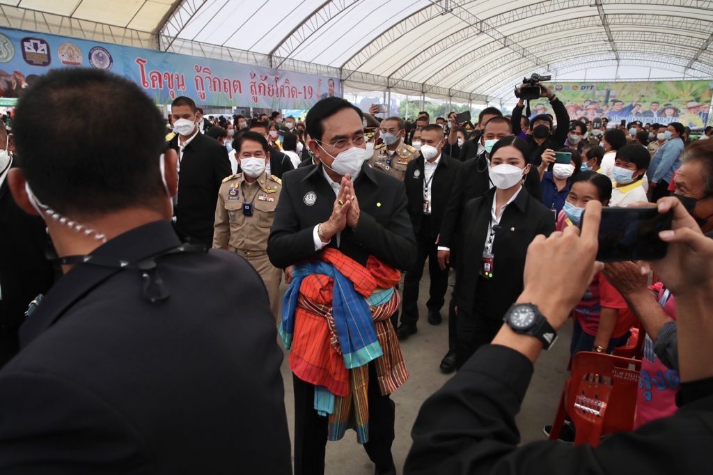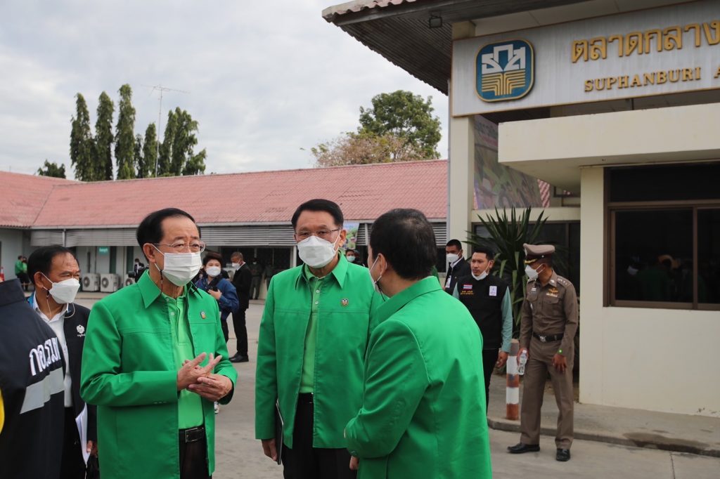 พลเอกประยุทธ์ จันทร์โอชา นายกรัฐมนตรี พร้อมด้วยนายอาคม เติมพิทยาไพสิฐ รัฐมนตรีว่าการกระทรวงการคลังและประธานกรรมการธนาคารเพื่อการเกษตรและสหกรณ์การเกษตร (ธ.ก.ส.) และนายธนารัตน์ งามวลัยรัตน์ ผู้จัดการ ธ.ก.ส. พร้อมด้วยผู้บริหารและผู้แทนจากส่วนงานต่าง ๆ ลงพื้นที่ ณ ตลาดกลางสินค้าเกษตรสุพรรณบุรี อำเภอศรีประจันต์ จังหวัดสุพรรณบุรี ร่วมส่งมอบเงินตามมาตรการช่วยเหลือเกษตรกรผู้ปลูกข้าว โครงการประกันรายได้เกษตรกรผู้ปลูกข้าวและมาตรการคู่ขนาน ปีการผลิต 2564/65