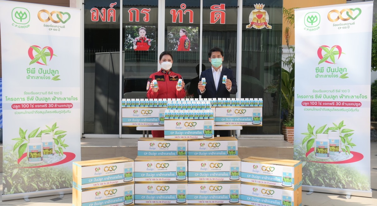 กรุงเทพฯ 15 ธ.ค.-เครือเจริญโภคภัณฑ์(ซีพี) มอบยาสมุนไพรฟ้าทะลายโจร จำนวน 10,000 กระปุก สนับสนุนองค์กรทำดีนำไปแจกจ่ายผู้ติดเชื้อโควิด-19 ในพื้นที่ระบาดตามแนวชายแดนและประชาชนในพื้นที่ต่าง ๆ