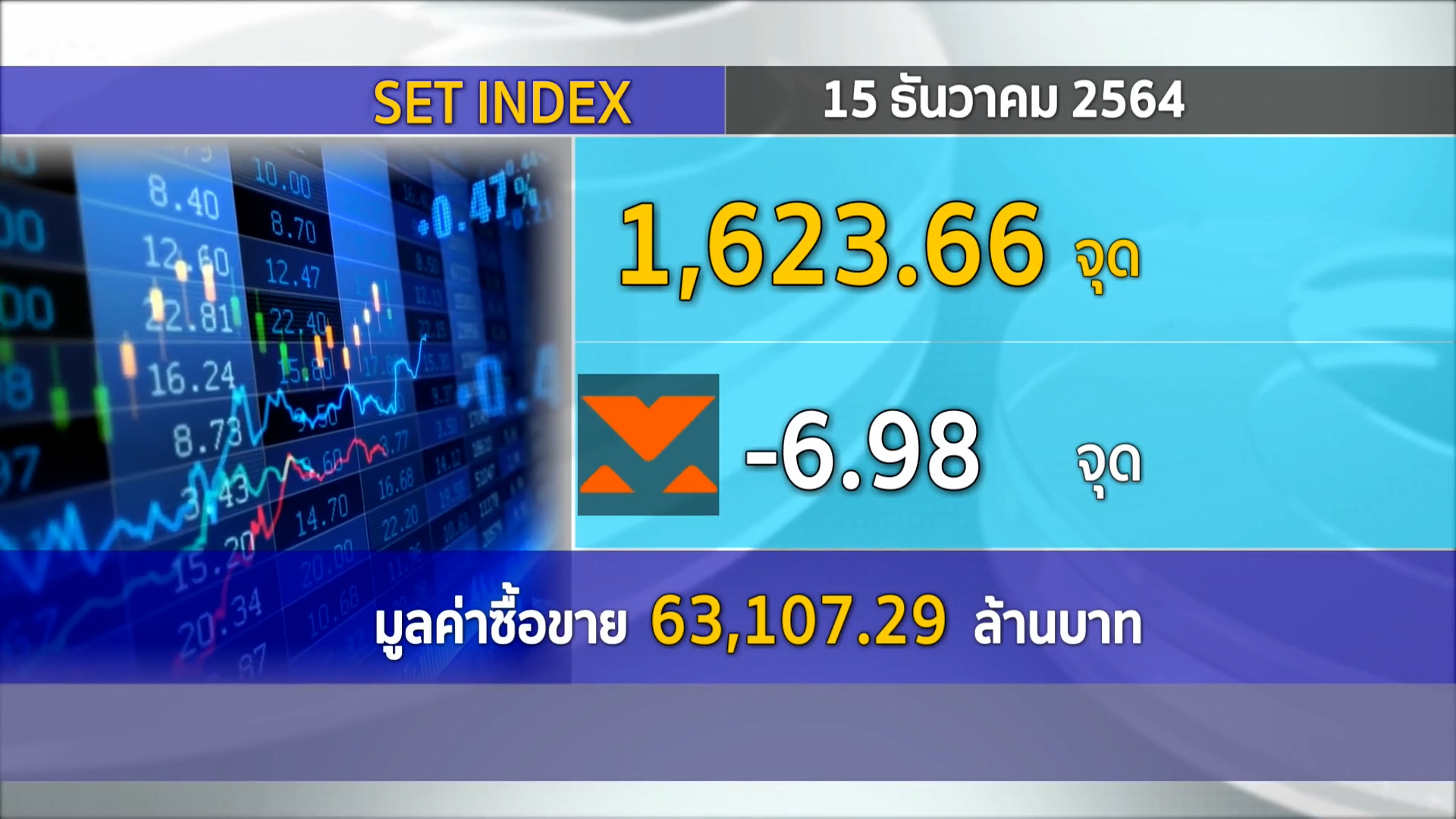 กทม. 15 ธ.ค.- ตลาดหลักทรัพย์ ปิดวันนี้ที่ระดับ 1,623.66 จุด ลดลง 6.98 จุด (-0.43%) มูลค่าการซื้อขาย 63,107.29 ล้านบาท แกว่งแคบรอผลประชุมเฟด-แรงกดดันจากกระแสข่าวเก็บภาษีขายหุ้น