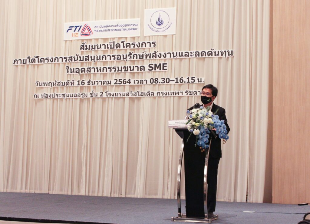 นายสมโภชน์ อาหุนัย รองประธานสภาอุตสาหกรรมแห่งประเทศไทย และประธานสถาบันพลังงานเพื่ออุตสาหกรรม กล่าวว่า ประเทศไทยเป็นประเทศที่ยังพึ่งพาการนำเข้าพลังงานจากต่างประเทศ แม้ว่าสถิติการใช้พลังงานของประเทศในปีที่ผ่านมาจะมีแนวโน้มการใช้พลังงานขั้นสุดท้ายผันผวนในทิศทางที่ลดลง ซึ่งสาเหตุหลักส่วนหนึ่งมาจากสถานการณ์การแพร่ระบาดของ COVID-19 แต่หลังจากปีนี้ ทุกภาคส่วนกำลังฟื้นฟูกลับมาดำเนินการได้ตามปกติ หากเรายังมีพฤติกรรมการใช้พลังงานแบบเดิม การใช้พลังงานก็จะกลับมามีแนวโน้มสูงขึ้นอย่างต่อเนื่องและต้องนำเข้าพลังงานมากขึ้น ด้วยเหตุนี้เอง ทุกภาคส่วนจึงควรเร่งปรับตัว ซึ่งแนวทางที่ทุกคนมีส่วนช่วยได้คือ “การใช้พลังงานอย่างมีประสิทธิภาพ” ไม่ว่าจะเป็นการปรับพฤติกรรมการใช้พลังงานให้ประหยัดมากขึ้น หรือการปรับปรุงใช้เครื่องจักรอุปกรณ์ที่มีประสิทธิภาพสูง โดยเฉพาะอย่างยิ่งภาคอุตสาหกรรม ที่ถือเป็นภาคส่วนที่มีสัดส่วนการใช้พลังงานสูง มีผู้ประกอบการเป็นจำนวนมาก และส่วนใหญ่คือโรงงานอุตสาหกรรมขนาดกลางและขนาดย่อม (SMEs) ที่ยังคงให้ความสำคัญกับเรื่องพลังงานน้อย สถาบันพลังงานเพื่ออุตสาหกรรมและกองทุนเพื่อส่งเสริมการอนุรักษ์พลังงาน กระทรวงพลังงาน ตระหนักถึงความสำคัญของการอนุรักษ์พลังงานในโรงงาน SMEs จึงสนับสนุนให้มีโครงการสนับสนุนการอนุรักษ์พลังงานและลดต้นทุนในอุตสาหกรรมขนาด SME หรือโครงการ Energy Points ที่ส่งเสริมให้ผู้ประกอบการหันมาให้ความสำคัญอย่างจริงจัง รวมถึงพิจารณานำแนวทางส่งเสริมต่างๆ ของโครงการ Energy Points ไปปรับใช้เพื่อการประหยัดพลังงาน ลดต้นทุน และเสริมสร้างขีดความสามารถการแข่งขันทางธุรกิจต่อไป