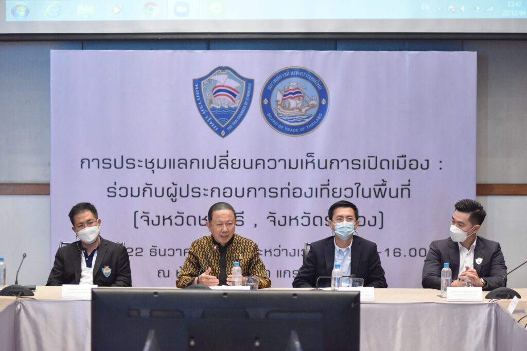 กรุงเทพฯ 23 ธ.ค.-ผู้บริหารหอการค้าไทยยกทีมประชุมร่วมเอกชน ชลบุรี – ระยองเพื่อรับฟังเสียงผู้ประกอบการในพื้นที่เพื่อเตรียมเสนอขยายพื้นที่ Sandbox