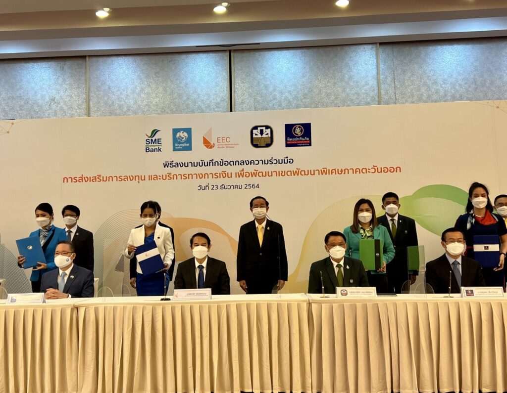 ความร่วมมือที่เกิดขึ้น ระหว่าง สกพอ. และ 4 สถาบันการเงินครั้งนี้ จะเป็นกลไกสำคัญเพื่อเร่งบรรเทาผลกระทบสถานการณ์โควิด 19 ส่งเสริมให้เกิดการพัฒนาผลิตภัณฑ์หรือบริการธุรกรรมทางการเงินประเภทต่างๆ การพัฒนานวัตกรรมใหม่ด้านการเงิน ที่พร้อมช่วยเหลือผู้ประกอบการทุกระดับในพื้นที่อีอีซี ทั้งในเรื่องสินเชื่อรูปแบบพิเศษที่เหมาะสมกับผู้ประกอบการเอสเอ็มอีในแต่ละกลุ่มสินเชื่อเพื่อยกระดับเกษตรกรไปสู่การทำธุรกิจการเกษตร และเข้าถึงบริการประกันภัยในรูปแบบต่าง ๆ ที่เหมาะสม ลดความเสี่ยงผู้ประกอบการ รวมทั้งเพิ่มศักยภาพในการดำเนินธุรกิจให้กลุ่มผู้ประกอบการเอสเอ็มอี กลุ่มเกษตรกร และชุมชนในพื้นที่ อีอีซี เกิดความเข้มแข็งยกระดับรายได้ต่อเนื่อง เสริมสร้างเศรษฐกิจฐานรากให้มั่นคง ซึ่งจะเป็นต้นแบบเพื่อนำไปใช้พัฒนาพื้นที่อื่นๆ ทั่วประเทศต่อไปในอนาคต