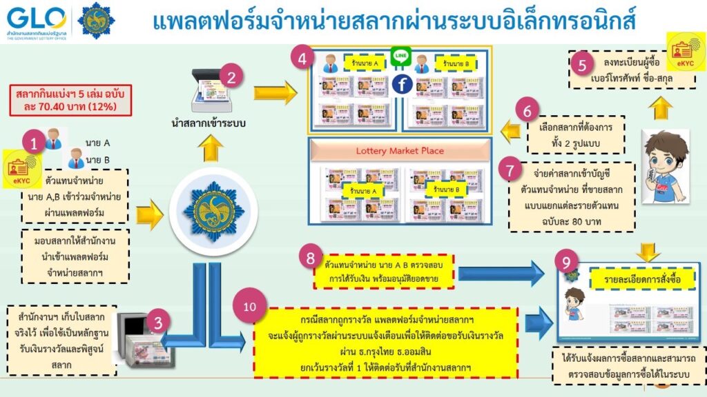 นายธนวรรธน์ พลวิชัย กรรมการและโฆษกคณะกรรมการสลากกินแบ่งรัฐบาล กล่าวว่า การแก้ปัญหาสลากเกินราคาต้องใช้หลายมาตรการประกอบกัน เนื่องจากปัญหาเกิดจากหลายสาเหตุ ทั้ง 3 มาตรการ ยอมรับว่า ส่งผลกระทบต่อผู้ขายสลากนอกระบบ และผู้จำหน่ายในส่วนของตลาดดอทคอมต่างๆ และจะทำให้ตลาดออนไลน์เหล่านี้ ต้องกลับมาขายในราคา 80 บาท เมื่อสำนักงานสลากฯ หันมาเปิดแพลตฟอร์มออนไลน์เอง โดยหลังจากนี้ สำนักงานสลากฯ จะกำหนดสัดส่วนการจำหน่ายแบบใบและแบบผ่านแพลตฟอร์มออนไลน์ให้มีความเหมาะสม ขณะที่ระบบจอง-ซื้อล่วงหน้า นับว่ามีสัดส่วนร้อยละ 72 ของตัวแทนจำหน่ายสลากทั้งหมด