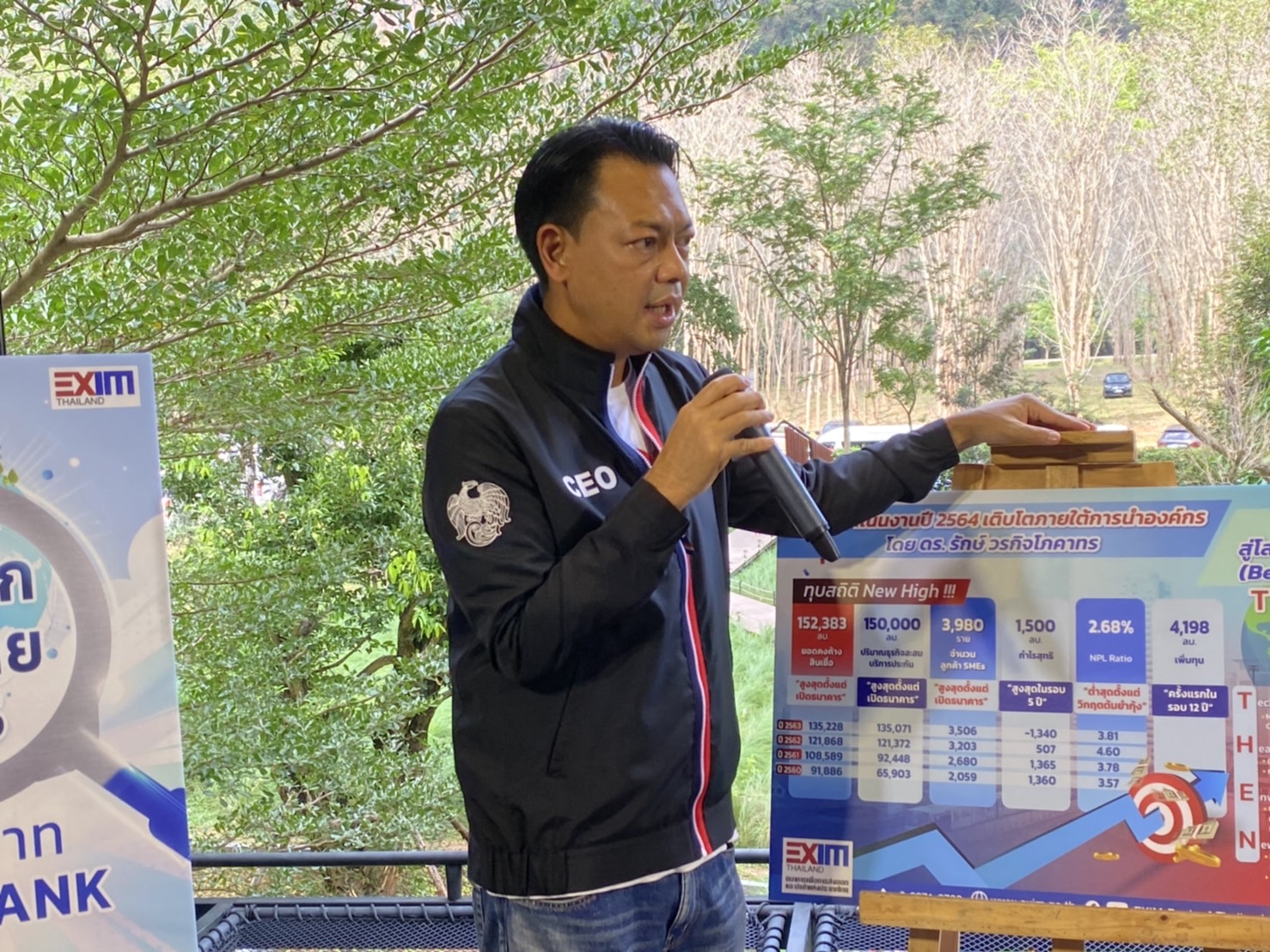 “ปี 2564 เป็นก้าวแรกของ EXIM BANK ที่ได้พลิกโฉมและยกระดับองค์กรสู่การเป็นธนาคารเพื่อการพัฒนาแห่งประเทศไทย เพื่อตอบสนองความต้องการและความคาดหวังของภาครัฐและภาคเอกชน ตลอดจนลูกค้าและผู้มีส่วนได้ส่วนเสีย ควบคู่ไปกับการบริหารจัดการองค์กรอย่างรับผิดชอบต่อสังคมและยั่งยืน ท่ามกลางปัจจัยท้าทายต่าง ๆ นำมาซึ่งโอกาสใหม่ ๆ ของภาคธุรกิจและการพัฒนาอย่างยั่งยืนของประเทศไทยและโลกโดยรวม” ดร.รักษ์ กล่าว