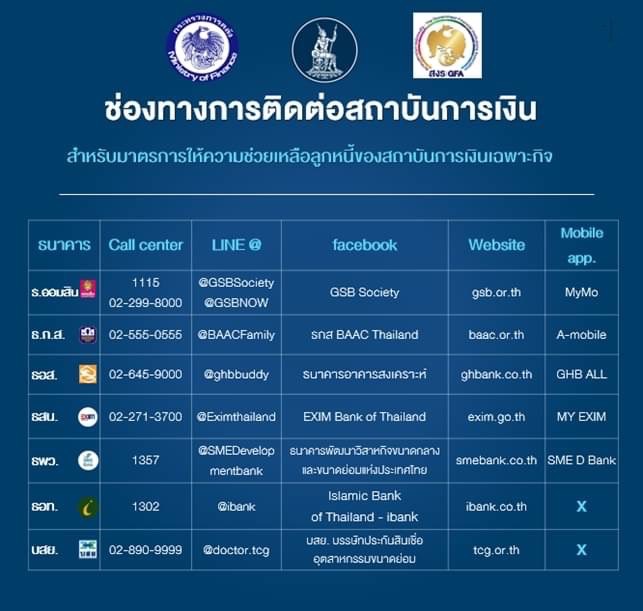 สำหรับลูกหนี้ที่ต้องการความช่วยเหลือหรือแก้ไขหนี้เดิม สามารถติดต่อ SFIs ที่ใช้บริการอยู่เพื่อขอรับความช่วยเหลือได้แล้ว และหากต้องการข้อมูลเพิ่มเติม สามารถติดต่อผ่าน SFIs ที่ท่านใช้บริการ หรือศูนย์คุ้มครองผู้ใช้บริการทางการเงิน (ศคง.) โทร. 1213.-สำนักข่าวไทย
