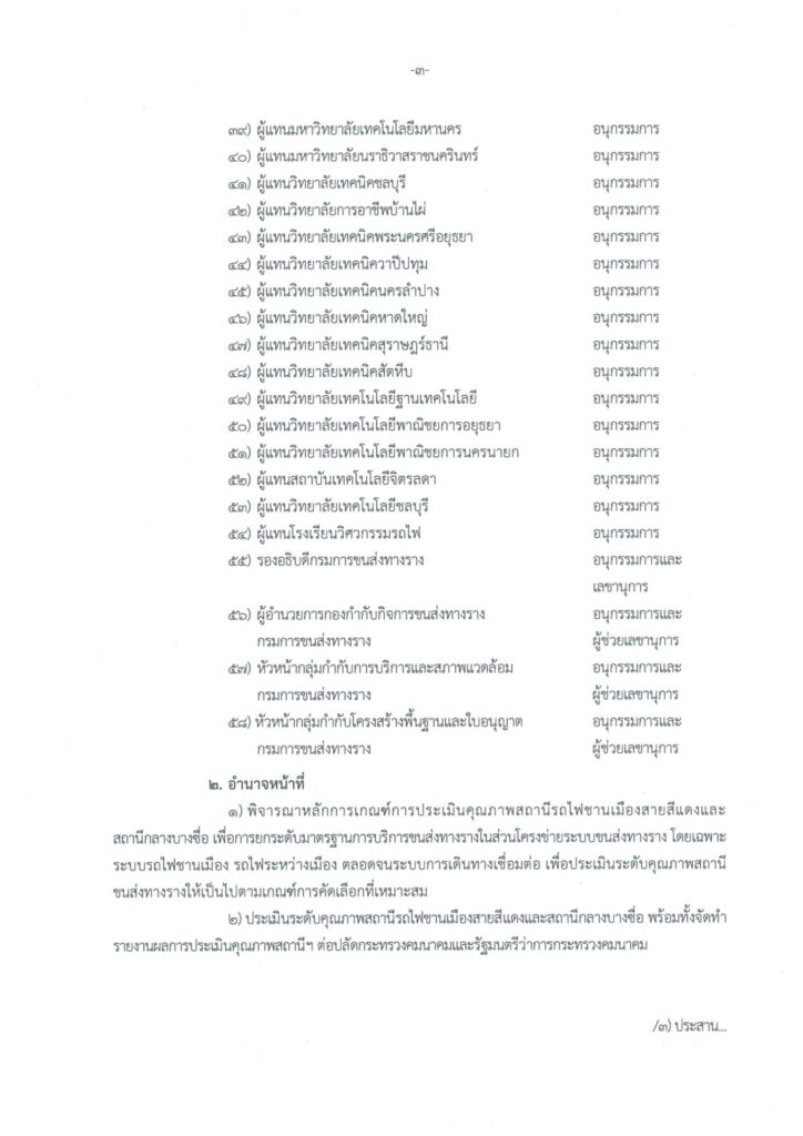 2 ) ประเมินระดับคุณภาพสถานีรถไฟชานเมืองสายสีแดงและสถานีกลางบางซื่อ พร้อมทั้งจัดทำรายงานผลการประเมินคุณภาพสถานีฯ ต่อปลัดกระทรวงคมนาคมและรัฐมนตรีว่าการกระทรวงคมนาคม