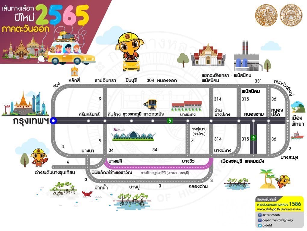 28 ธ.ค. – กรมทางหลวง แนะนำเส้นทางออกจากกรุงเทพฯ ไปต่างจังหวัดในช่วงเทศกาลปีใหม่ 2565 เพื่อให้ผู้ใช้ทางได้รับความสะดวกรวดเร็วในการเดินทาง เลี่ยงการจราจรติดขัด