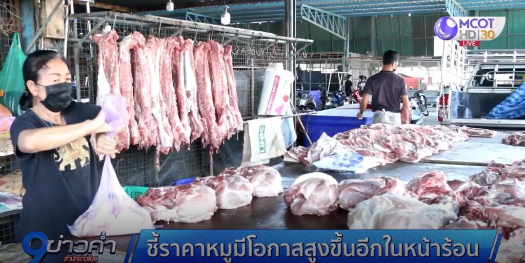 ผู้สื่อข่าวลงพื้นที่ตลาดค้าส่งเนื้อสุกร จ.นครปฐม พบกับผู้ประกอบการค้าส่งเนื้อสุกรรายหนึ่ง เล่าให้ฟังว่า ปัญหาคือต้นทุนจากผู้เลี้ยง ราคาอาหารสัตว์ ค่าจ้างแรงงาน ปัจจุบันอายุ 60 ปีแล้ว ยังไม่เคยเจอราคาแพงขนาดนี้ ย้อนหลังไป 3 เดือนก่อน ราคาประมาณ 80 บาทต่อกิโลกรัม ปัจจุบันกว่า 110 บาท ซึ่งกระทบกับผู้ค้าส่ง ผู้ค้ารายย่อย รวมถึงผู้บริโภค เพราะรายย่อยที่รับหมูไปขายต้องบวกราคาเพิ่ม เพราะทุกคนมีค่าใช้จ่าย ค่าจ้างแรงงาน เพื่อความอยู่รอด ทุกวันนี้ขายไม่ได้กำไรมากมาย ที่ยังทำอยู่เพราะเป็นอาชีพเดิม มีอาชีพเดียว เลี้ยงลูกค้าไว้ พร้อมระบุว่าเรื่องการคุมราคาของภาครัฐ หากราคายังเป็นแบบนี้ รัฐบาลน่าจะเข้ามาช่วยอะไรบ้าง เพื่อประโยชน์ของผู้บริโภค จะได้เนื้อหมูราคาถูกลง แต่เข้าใจผู้เลี้ยง เนื่องจากต้นทุนที่สูงก็ต้องขายราคาแพงขึ้น แต่อยากให้เข้าใจผู้บริโภค แต่หากรัฐบาลจะนำหมูนอกเข้ามา หรือจะมีหมูราคาถูกเข้ามาขายให้ประชาชนน่าจะช่วยได้ แต่น่าจะเป็นระยะสั้นๆ ทุกอย่างเวลานี้เป็นไปตามกลไกลของตลาด ไม่มีใครอยากให้ราคาแพง
