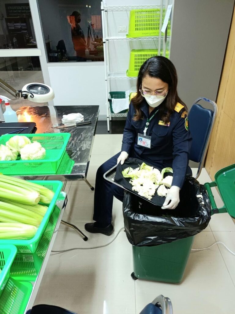 รองอธิบดีกรมวิชาการเกษตรกล่าวว่า จากการตรวจสอบโรคและแมลงศัตรูพืชผักสดนำเข้าพบว่า ในวันที่ 1 ธันวาคม 2564 และวันที่ 1 มกราคม 2565 มีสินค้านำเข้า 2 ชิปเมนท์ที่ไม่มีใบแจ้งรายการนำเข้าผ่านระบบ NSW และตรวจพบกะหล่ำปลีสีม่วงไม่แจ้งมาในรายการพืชและไม่มีใบรับรองสุขอนามัยพืชรับรอง ซึ่งด่านตรวจพืชหนองคายแจ้งผู้ประกอบการนำเข้าให้ทำลายภายใน 14 วัน พร้อมกับได้ส่งหนังสือแจ้งเตือนไปยังจีนแล้วว่า พบการปฏิบัติที่ไม่เป็นไปตามเงื่อนไขการนำเข้าระหว่าง 2 ประเทศ