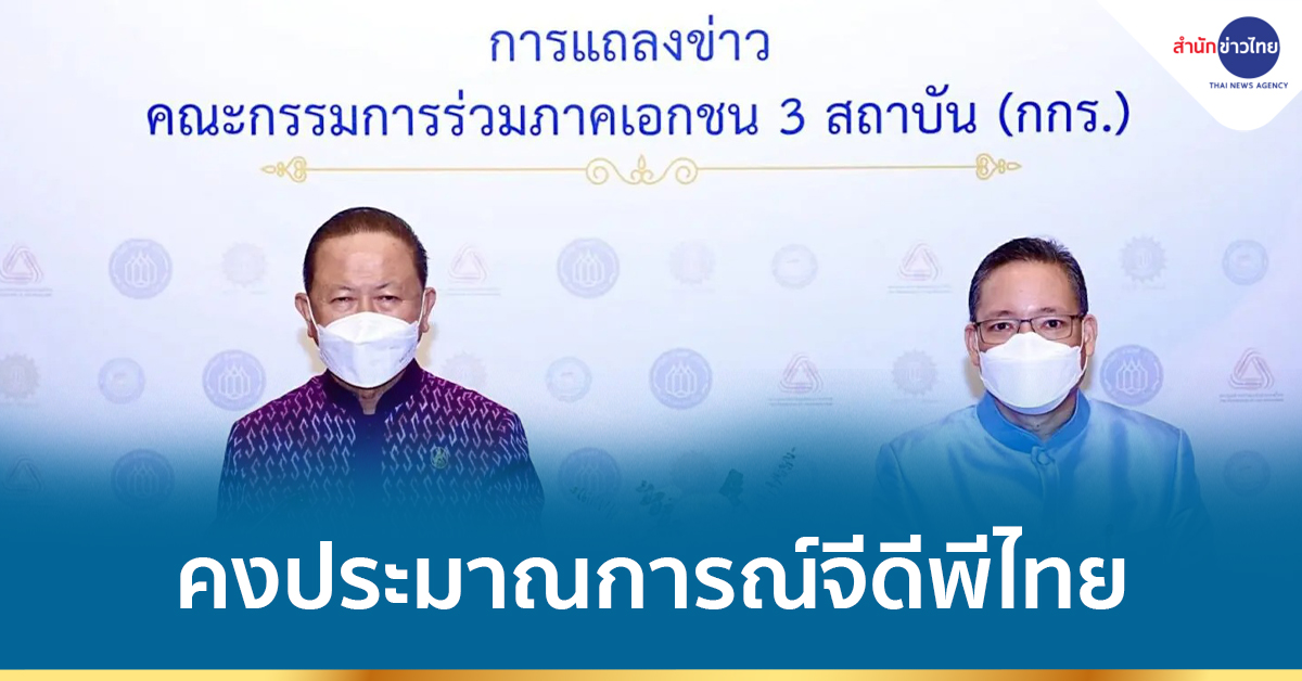 นายสนั่น อังอุบลกุล ประธานกรรมการหอการค้าไทยและสภาหอการค้าแห่งประเทศไทย และประธานคณะกรรมการร่วมภาคเอกชน 3 สถาบัน (กกร.) แถลงผลที่ประชุม กกร.วันนี้ว่า การประมาณการเศรษฐกิจปี 2565 คาดการณ์ว่าเศรษฐกิจมีแนวโน้มฟื้นตัวสอดคล้องกับที่คาดการณ์ไว้ หากสามารถบริหารจัดการการแพร่ระบาดของไวรัสสายพันธุ์ใหม่ได้อย่างมีประสิทธิภาพโดยไม่จำเป็นต้องมีการ Lockdown และเร่งแก้ไขปัญหาเงินเฟ้อและการปรับตัวของราคาสินค้าภายในประเทศอย่างรวดเร็ว กกร. จึงคงประมาณการเศรษฐกิจไทยปี 2565 จะขยายตัวได้ในกรอบ 3.0% ถึง 4.5% ขณะที่ประมาณการการส่งออกในปี 2565 ว่าจะขยายตัวในกรอบ 3.0% ถึง 5.0% ส่วนอัตราเงินเฟ้อทั่วไปคาดว่าจะยังอยู่ในกรอบ 1.2% ถึง 2.0% แต่จำเป็นต้องมีมาตรการระยะสั้นเพื่อบรรเทาปัญหาสินค้าอาหารราคาแพงเพื่อไม่ให้เกิดผลกระทบต่อผู้บริโภคมากเกินไป