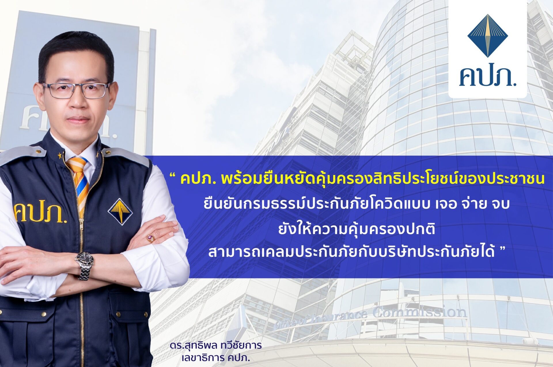 กทม. 16 ม.ค.-คปภ. พร้อมยืนหยัดคุ้มครองสิทธิประโยชน์ของประชาชน ยืนยันกรมธรรม์ประกันภัยโควิด แบบเจอ จ่าย จบ ยังให้ความคุ้มครองปกติสามารถเคลมประกันภัยกับบริษัทประกันภัยได้