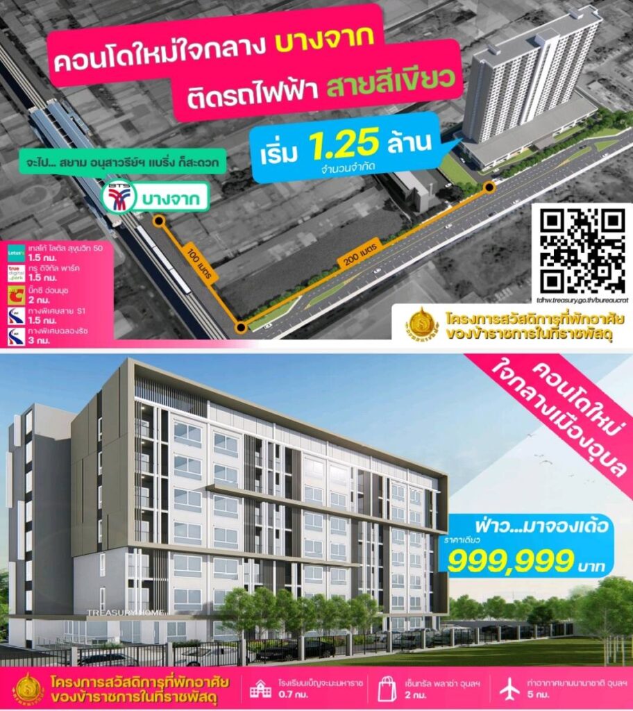 นายประภาศ กล่าวอีกว่า ผู้สนใจสามารถจองเข้าร่วมโครงการฯ เพิ่มเติมในแปลง กท. 475 (บางส่วน) แขวงบางจาก เขตพระโขนง กรุงเทพฯ ราคา 1,250,000 บาท และ 1,499,999 บาท เป็นคอนโดความสูง 28 ชั้น ตั้งอยู่ใจกลางบางจาก ตอบโจทย์ชีวิตคนเมือง ใกล้แหล่งชอปปิ้ง เชื่อมต่อการเดินทาง สู่ทุกจุดหมายอย่างสะดวกสบายได้รวดเร็วทั้งรถไฟฟ้าสถานีบางจากและทางพิเศษฉลองรัช และอีกหนึ่งทำเลที่เปิดจองเพิ่มเติมคือในพื้นที่อุบลราชธานี ราคาเพียง 999,999 บาท กับห้องขนาด 40 ตารางเมตร 76 ห้อง ตั้งอยู่ใจกลางเมืองอุบลราชธานี ใกล้โรงเรียนเบ็ญจะมะมหาราช เซ็นทรัลพลาซ่า และท่าอากาศยานนานาชาติ อุบลราชธานี โดยสามารถจองสิทธิเข้าร่วมโครงการฯ ได้ที่ https://tdhw.treasury.go.th/Bureaucrat/description ตั้งแต่วันนี้จนกว่า จะเต็มตามจำนวนที่เปิดจอง .-สำนักข่าวไทย