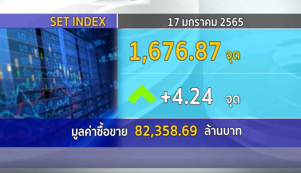 กทม. 17 ม.ค.-ตลาดหลักทรัพย์ ปิดวันนี้ที่ระดับ 1,676.87 จุด เพิ่มขึ้น 4.24 จุด (+0.25%) มูลค่าการซื้อขาย 82,389.00 ล้านบาท หุ้นไทยวันนี้เคลื่อนไหวอยู่ในแดนบวก สอดคล้องกับตลาดหุ้นอื่นในภูมิภาคเอเชีย เนื่องจากยังไม่มีปัจจัยใหม่