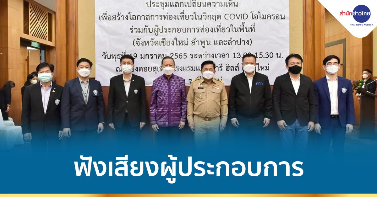 นายสนั่น อังอุบลกุล ประธานกรรมการหอการค้าไทยและสภาหอการค้าแห่งประเทศไทย เปิดเผยภายหลังประชุมหารือกับนายยุทธศักดิ์ สุภสร ผู้ว่าการการท่องเที่ยวแห่งประเทศไทย (ททท.) และนายประจญ ปรัชญ์สกุล ผู้ว่าราชการจังหวัดเชียงใหม่ พร้อมด้วยผู้ประกอบการ สมาคม และเครือข่ายธุรกิจท่องเที่ยวในพื้นที่ภาคเหนือ ณ โรงแรม แคนทารี่ จ.เชียงใหม่ ว่า การประชุมดังกล่าวเป็นการรับฟังข้อเสนอแนะและแนวทางการฟื้นฟูภาคท่องเที่ยว รวมถึงความพร้อมในพื้นที่ภาคเหนือ ซึ่งที่ผ่านมาต่างได้รับผลกระทบทางเศรษฐกิจที่รุนแรงจากการระบาดของโควิด 19 สายพันธุ์โอมิครอน โดยมีผู้ประกอบการจากจังหวัดเชียงใหม่ ลำพูน และลำปาง กว่า 123 ราย เข้าร่วม อาทิ ผู้ประกอบการธุรกิจโรงแรมในภาคเหนือ มัคคุเทศก์เชียงใหม่ กลุ่มผู้ประกอบการร้านอาหารและสถานบันเทิง ธุรกิจนวด สปา กลุ่มสินค้าหัตกรรมและศูนย์การค้า เป็นต้น โดยทางหอการค้าไทย ได้ให้ความเห็นว่าจากข้อมูลทางสาธารณสุข