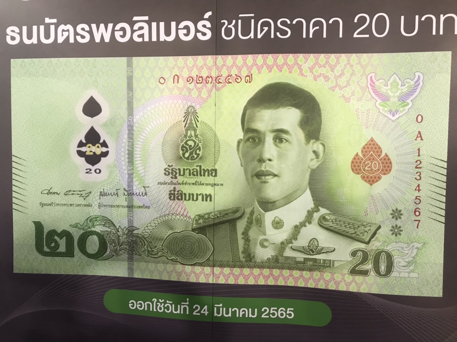 กรุงเทพฯ 20 ม.ค. – ธนาคารแห่งประเทศไทย จะออกใช้ธนบัตรพอลิเมอร์ชนิดราคา 20 บาท ในวันที่ 24 มี.ค.65 คุณสมบัติไม่ดูดซับความชื้นและสิ่งสกปรก ทนทานในการใช้งานมากกว่าธนบัตรกระดาษ